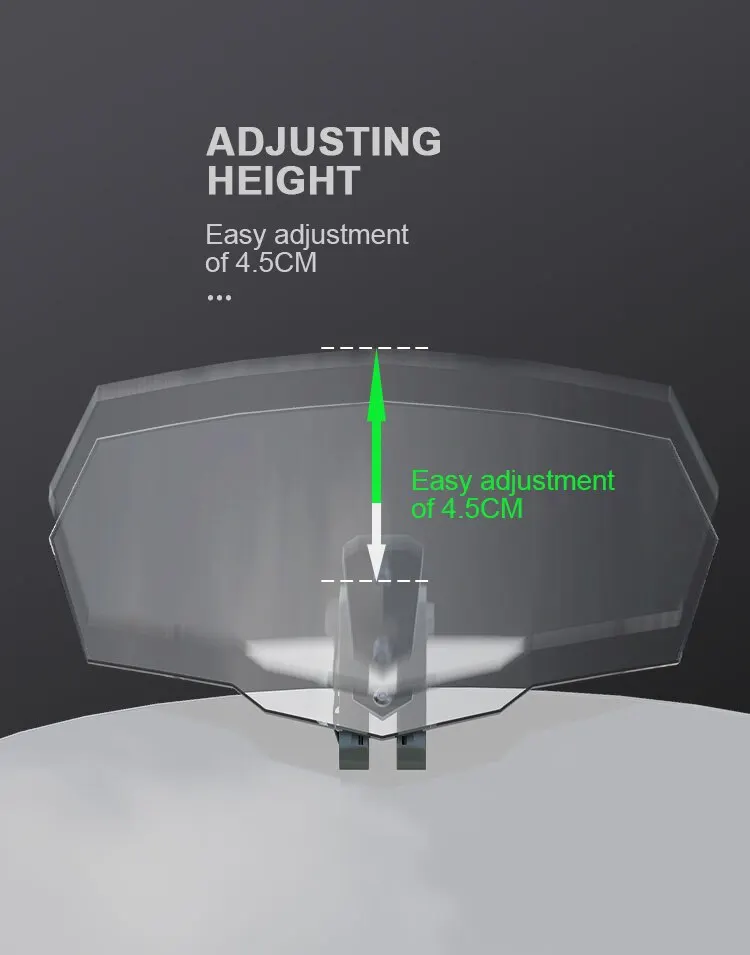 1. Он изготовлен из металлического кронштейна и материала из акрилового стекла, который более прочный и долговечный. Подходит для многих типов мотоциклов.