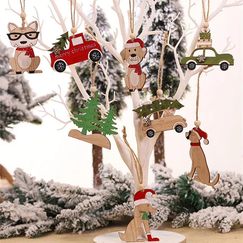 Новогодние и Новогодние украшения для новогодней елки, подвесные украшения для дома, детские игрушки, искусственная деревянная окрашенная красочная машина