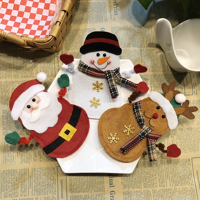 Новогодний чехол для столовых приборов, Карманный держатель для вилки, ножа, Санта-Клауса, снеговика, лося, украшение для дома