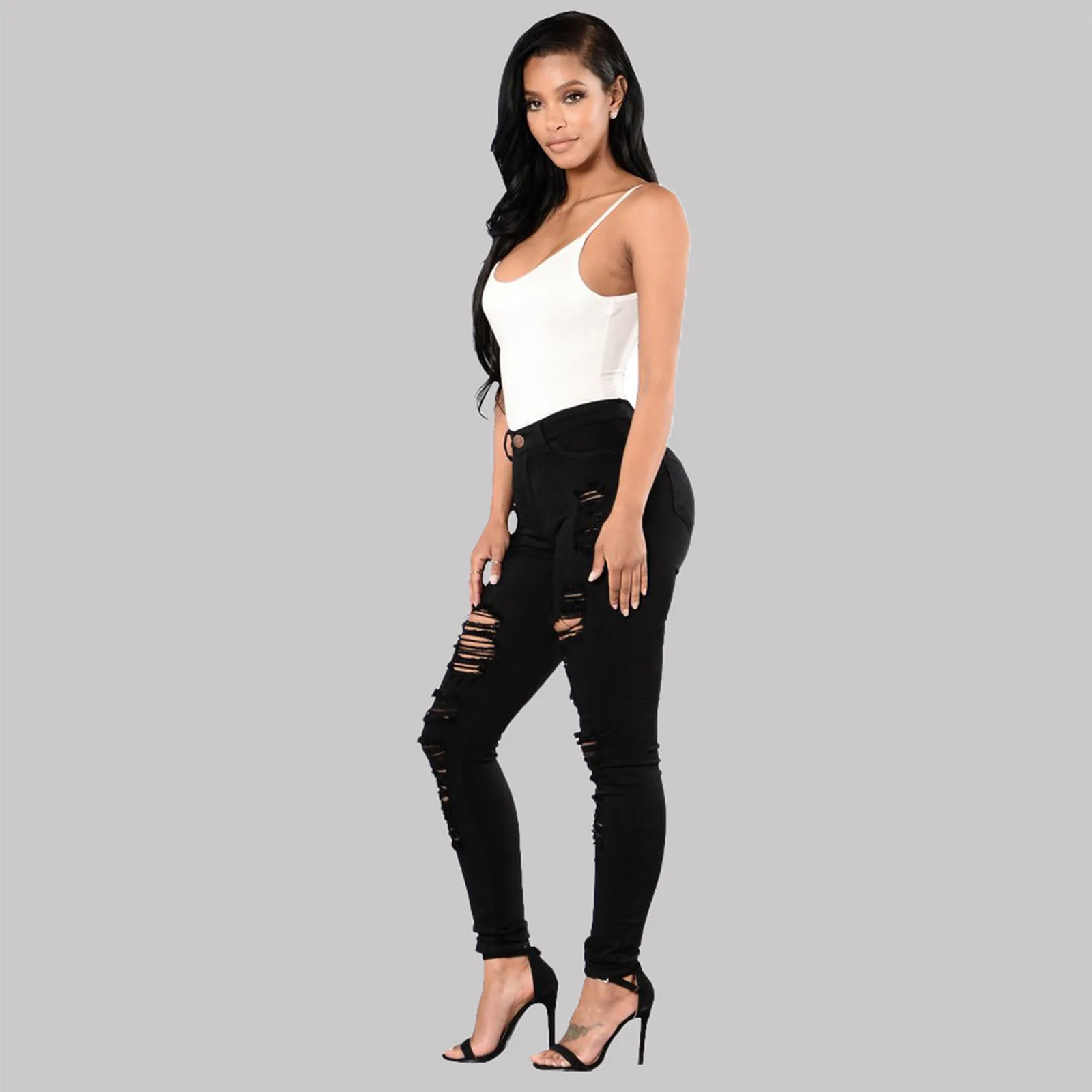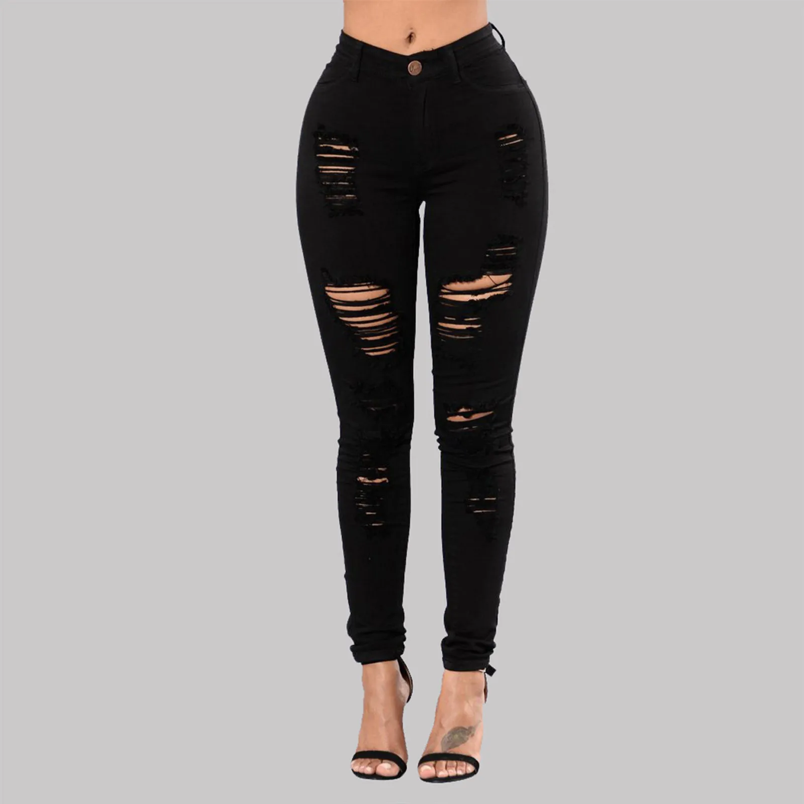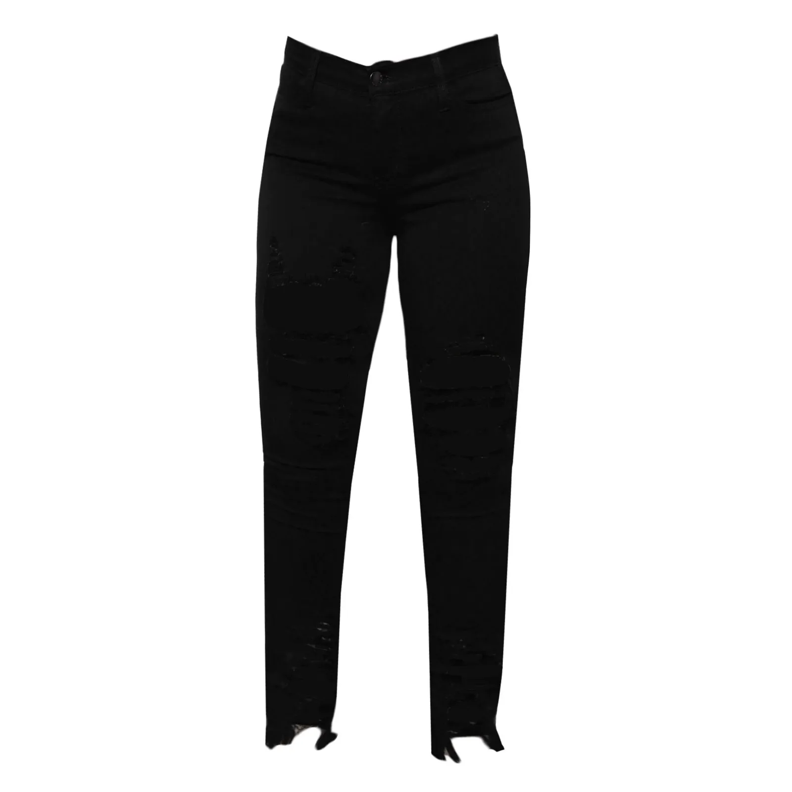 Новые черные белые Стрейчевые рваные джинсы скинни Джинсы женские джинсовые брюки с дырками рваные брюки-карандаш повседневные брюки