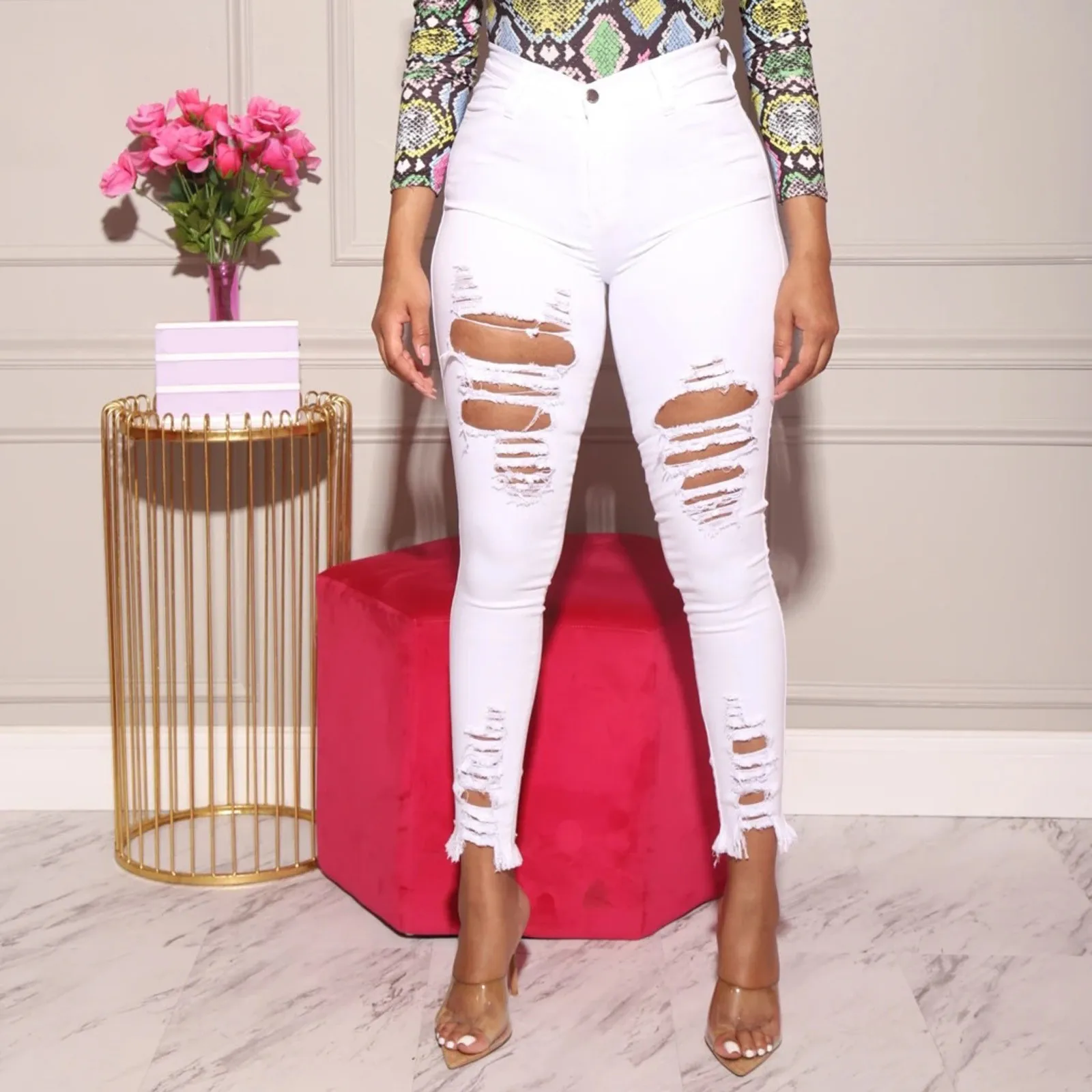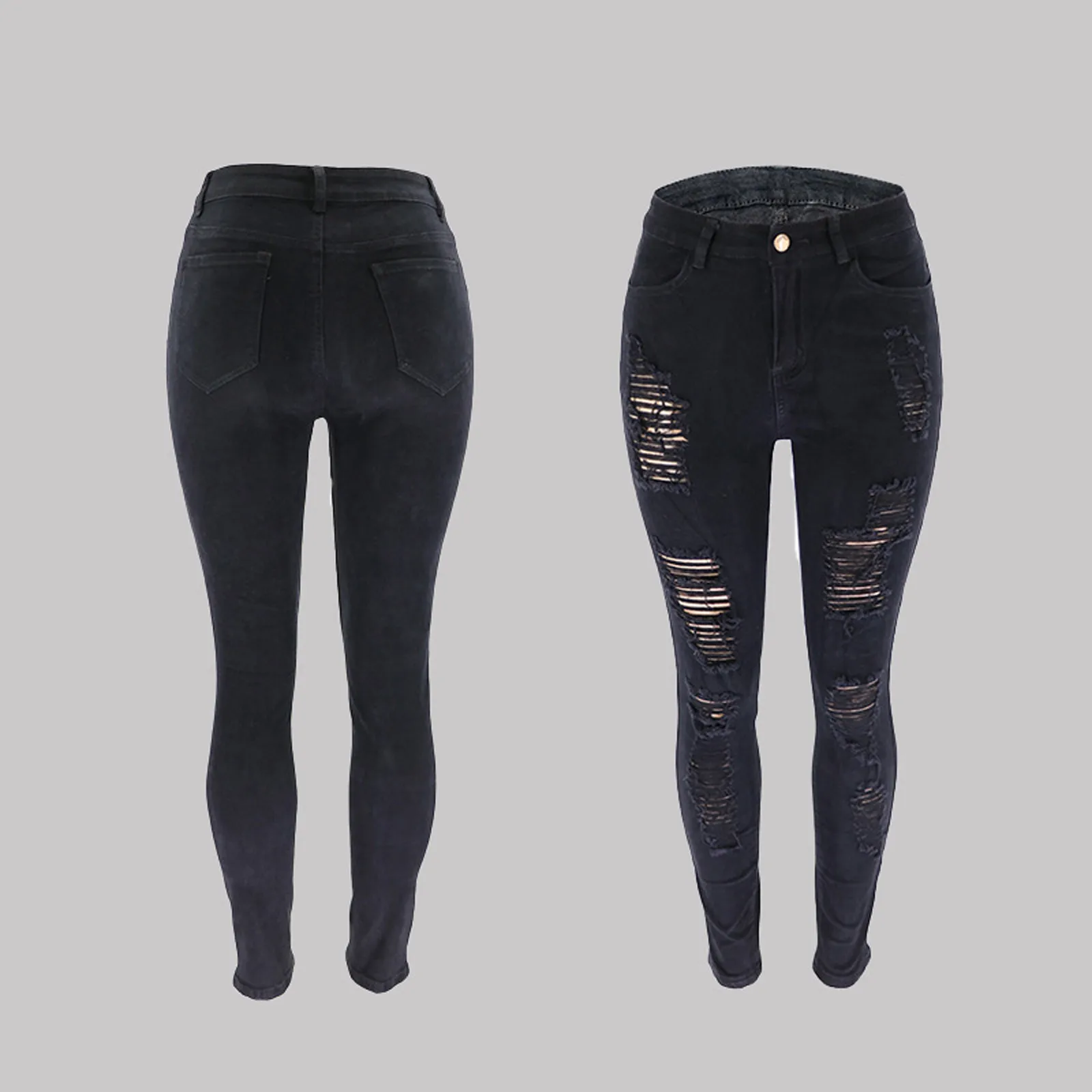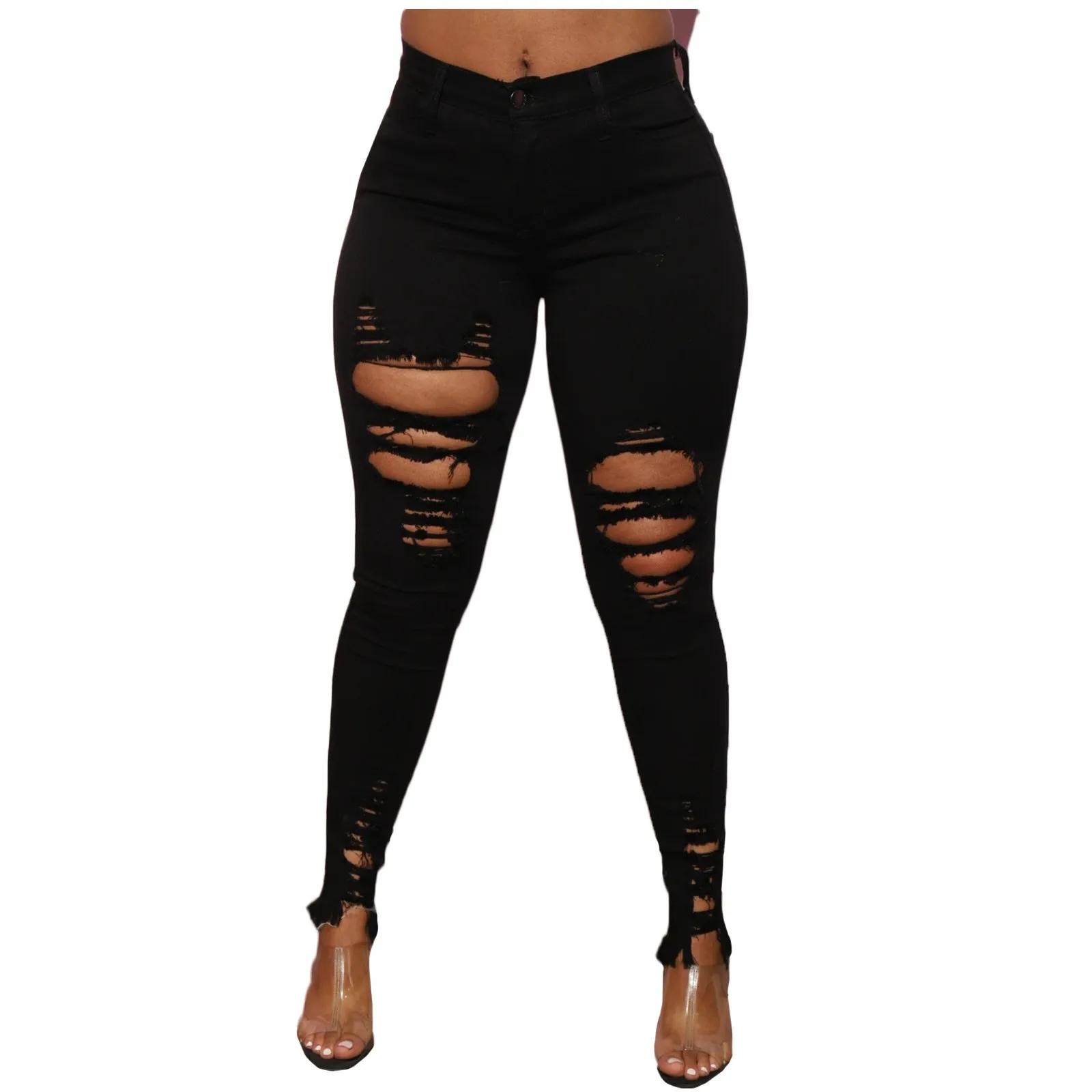 Новые черные белые Стрейчевые рваные джинсы скинни Джинсы женские джинсовые брюки с дырками рваные брюки-карандаш повседневные брюки