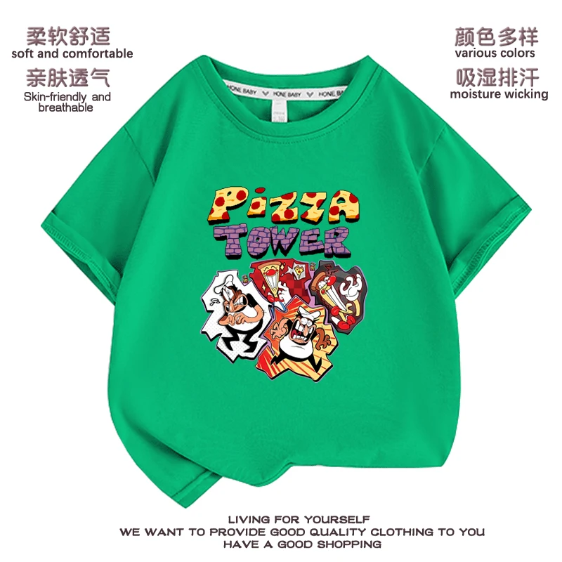 Новые крутые летние детские футболки с изображением пиццы и башни, футболки с коротким рукавом для мальчиков, повседневная детская одежда
