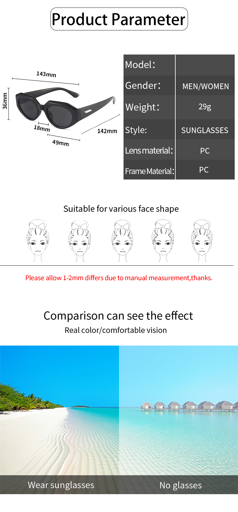 2. Пожалуйста, учитывайте разницу в 1-2 мм из-за ручного измерения, спасибо.