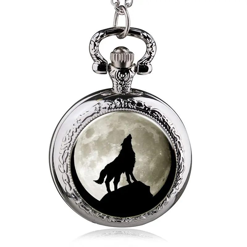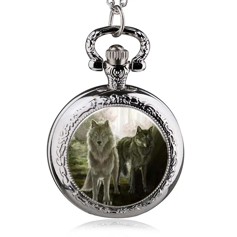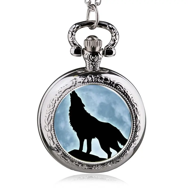 Новые модные кварцевые карманные часы с изображением волка, мужские часы с индивидуальным кулоном и ожерельем, женские часы, часы, мужские часы