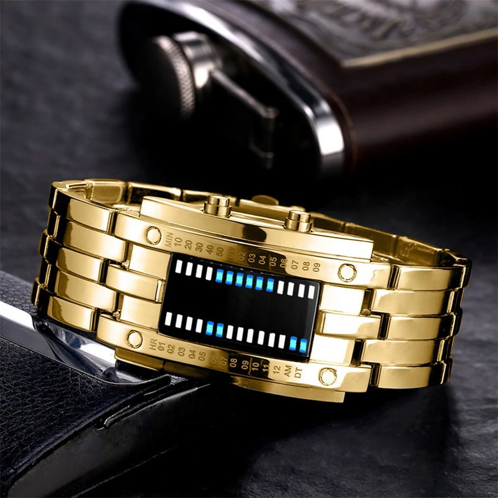 Новые модные мужские и женские часы со светодиодным браслетом, прочный браслет, креативные уличные спортивные Смарт-часы из нержавеющей стали
