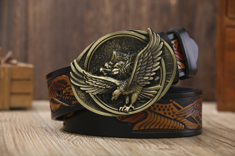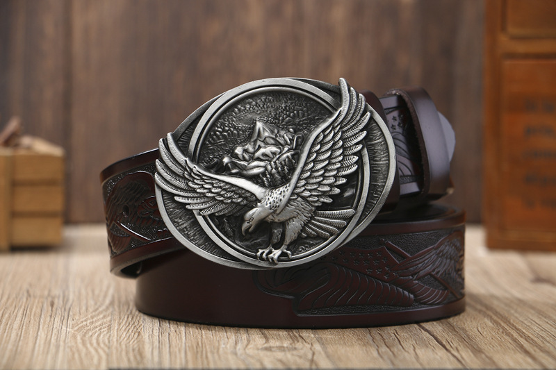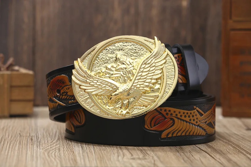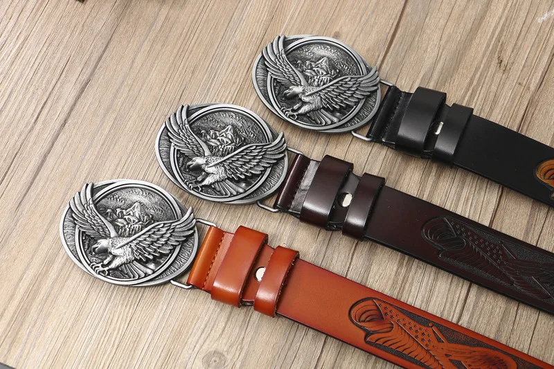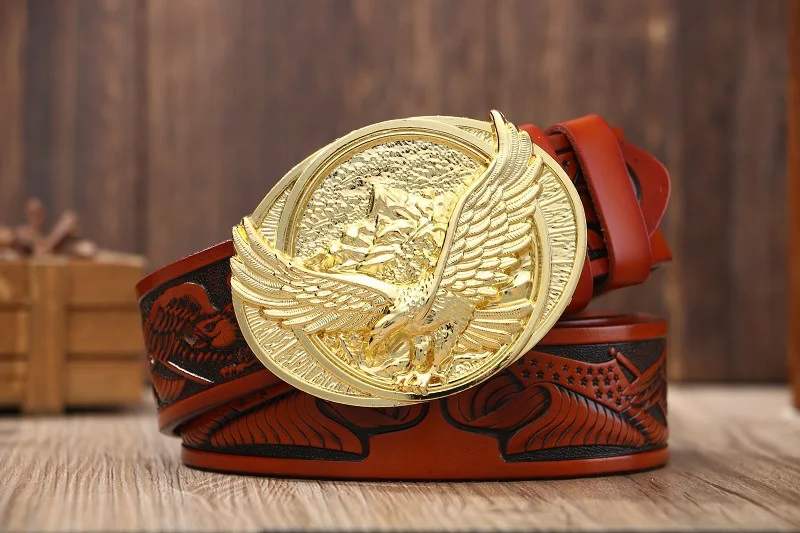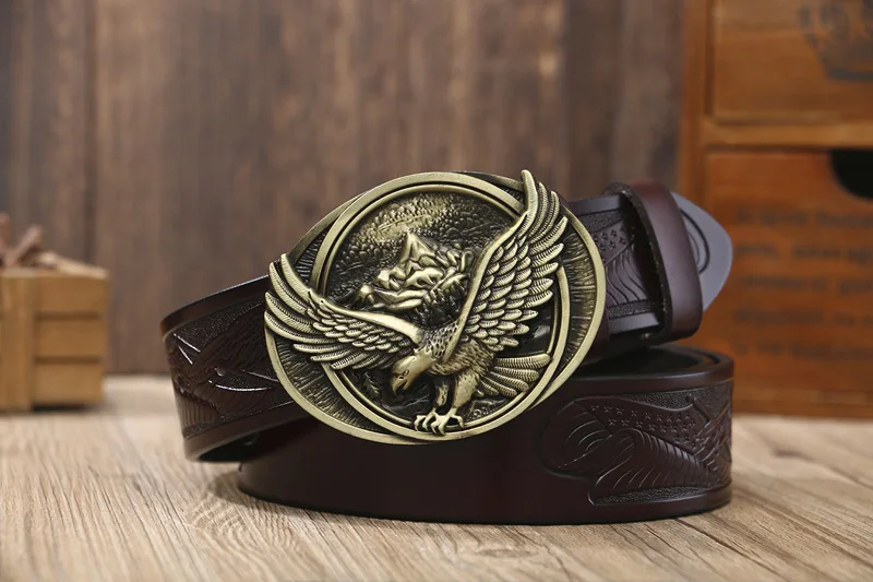 Новые модные мужские ремни из натуральной кожи, мужские высококачественные орлиные ремни с металлической пряжкой, пояс для мужчин, деловой пояс из воловьей кожи