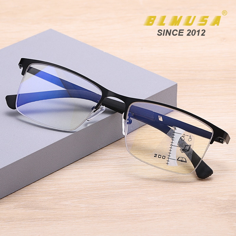 Новые мужские деловые очки BLMUSA с защитой от сисветильник, прогрессивные многофокальные очки для чтения, мужские Оптические очки с металлической оправой