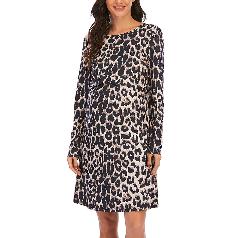 Женские платья для будущих и кормящих мам с леопардовым принтом для грудного вскармливания