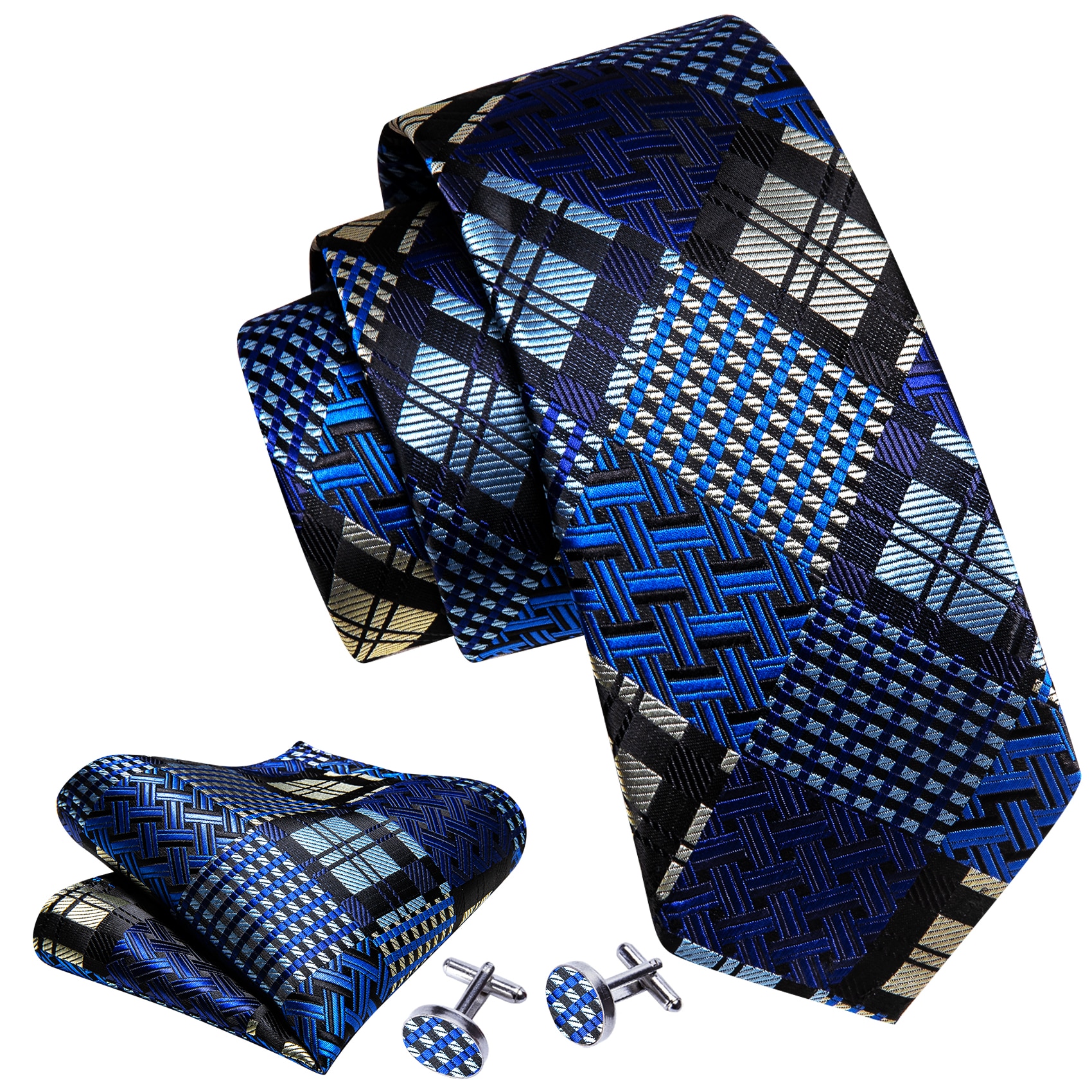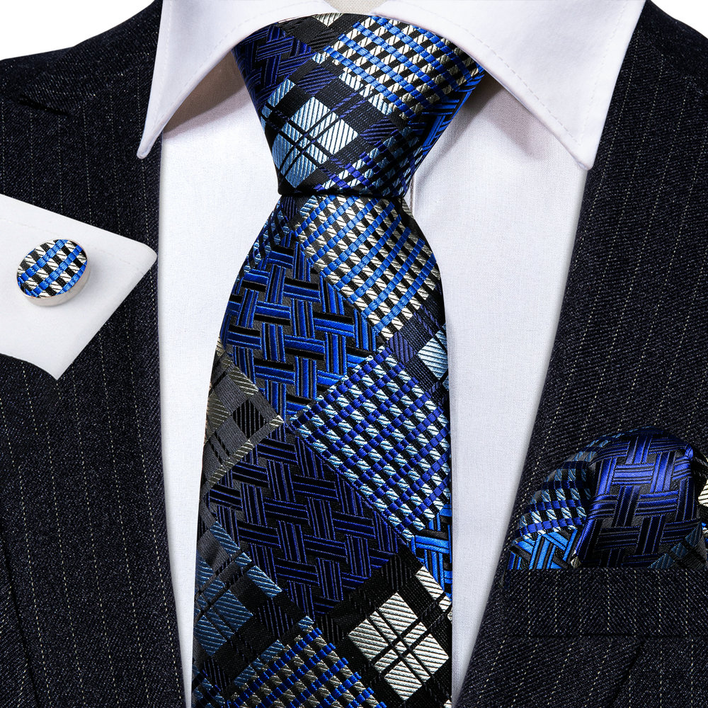 Новый 40 шт Шелковый синий клетчатый мужской галстук свадебный подарок Барри. Ван дизайнерский Галстук платок Запонки Набор Бизнес жениха LN-5801
