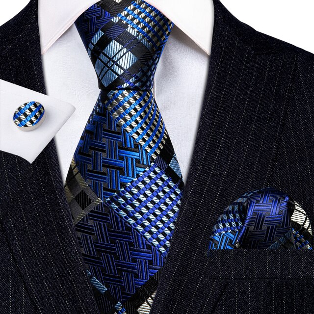 Новый 40 шт. Шелковый синий клетчатый мужской галстук свадебный подарок Barry.Wang дизайнерский галстук носовой платок запонки набор бизнес-жених LN-5801