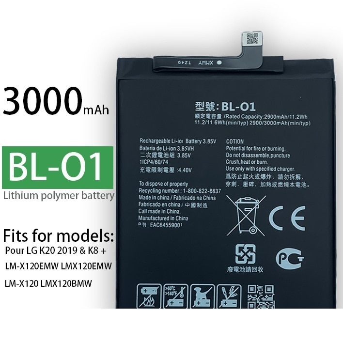 Новый аккумулятор 3000 мАч 3,85 В для LG K20 2019 / K8 + BL-01 LMX120BMW BL-O1 LM-X120EMW батареи + Инструменты