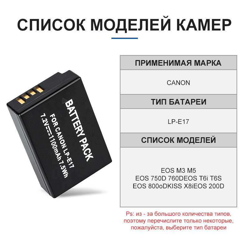 <span class="SnowProductCharacteristics_SnowProductCharacteristicsItem__titleContent__534v9">Номер модели</span> LP-E17 Battery