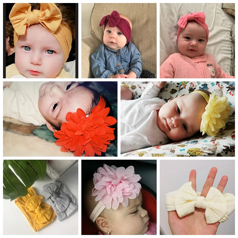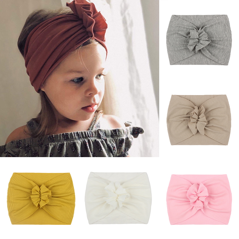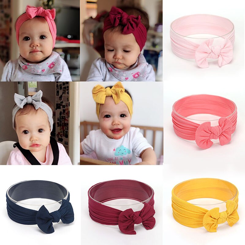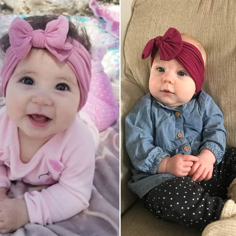 Новый большой повязка на голову с бантиком для младенца однотонный эластичный резинка для волос, тюрбан для новорожденных девочек аксессуары для волос