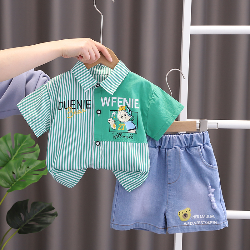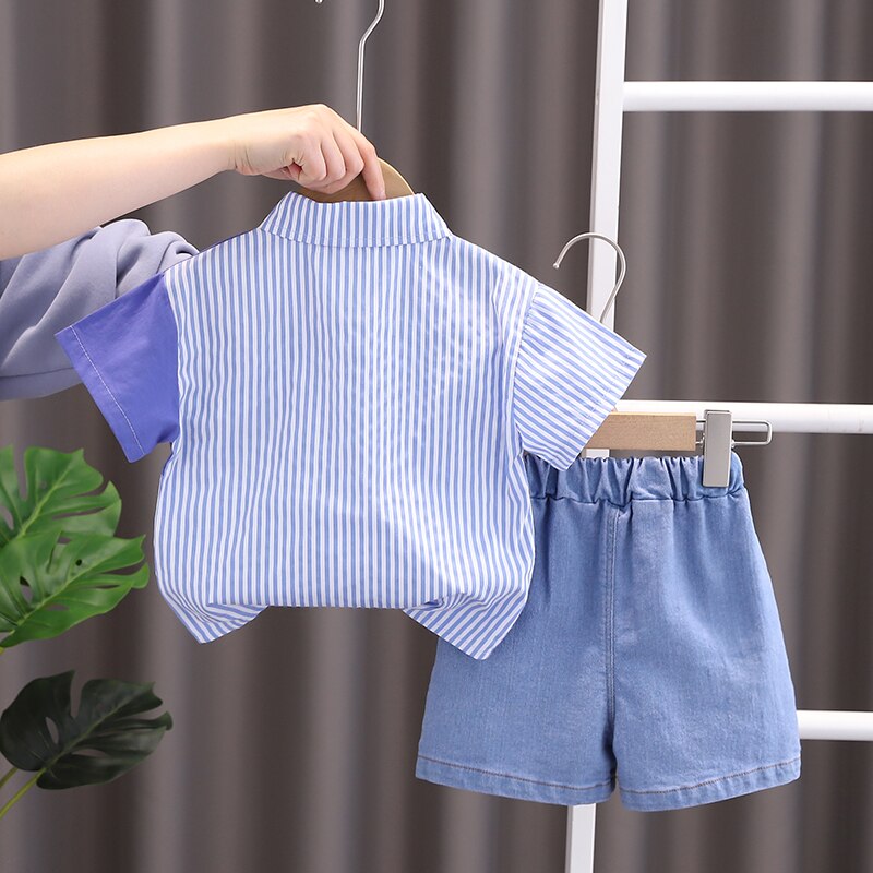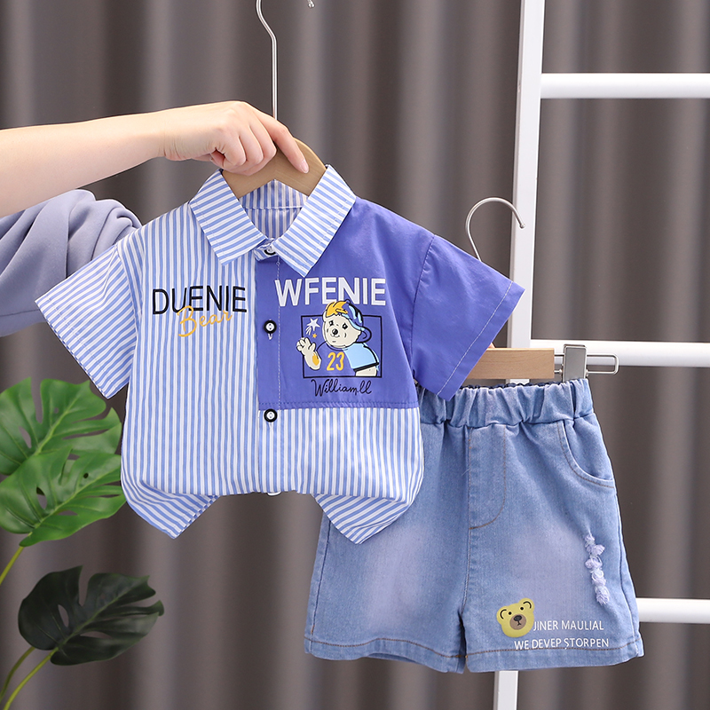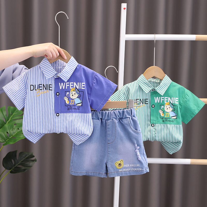 Новый летний детский комплект, Полосатое поло с рисунком для мальчиков рубашка с вырезом шорты с короткими рукавами Модный повседневный комплект из двух предметов