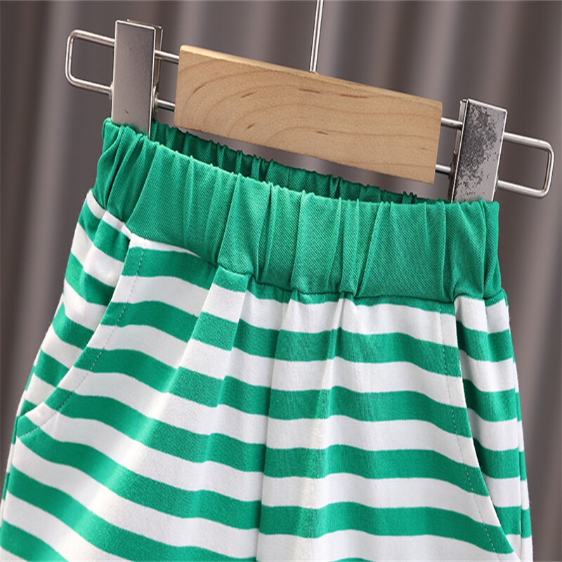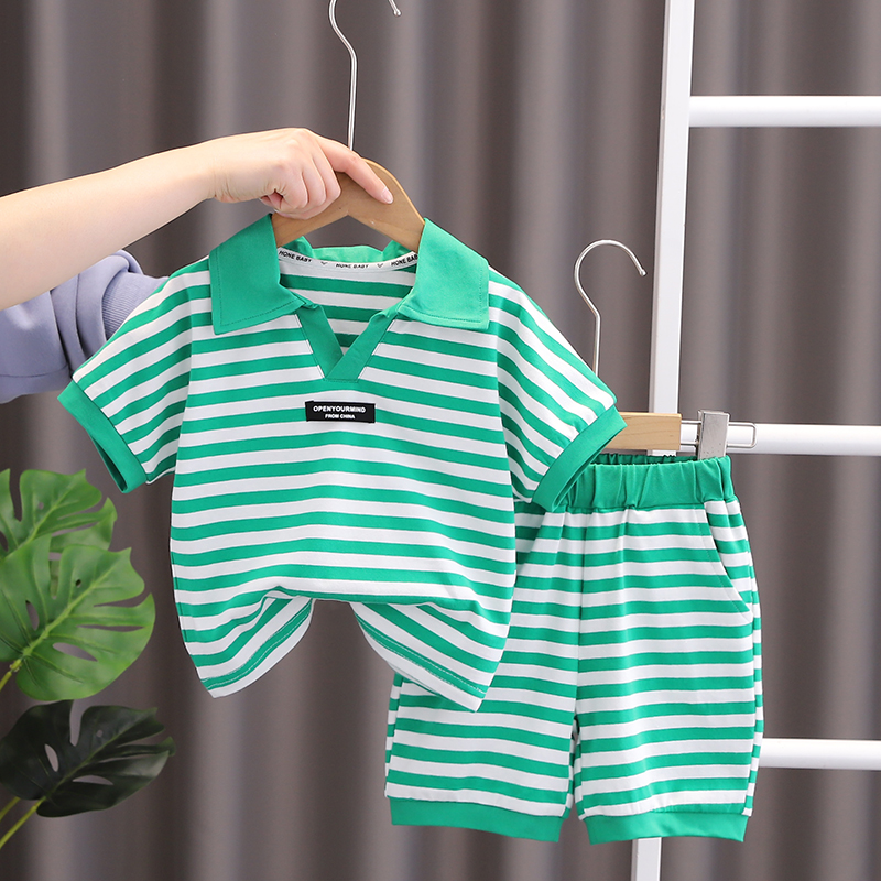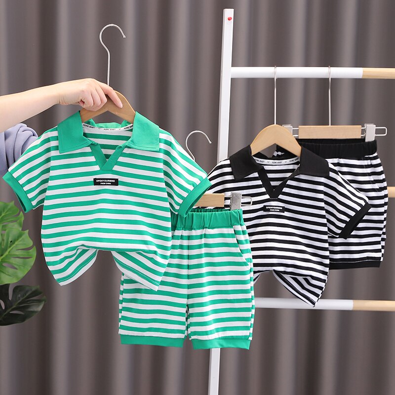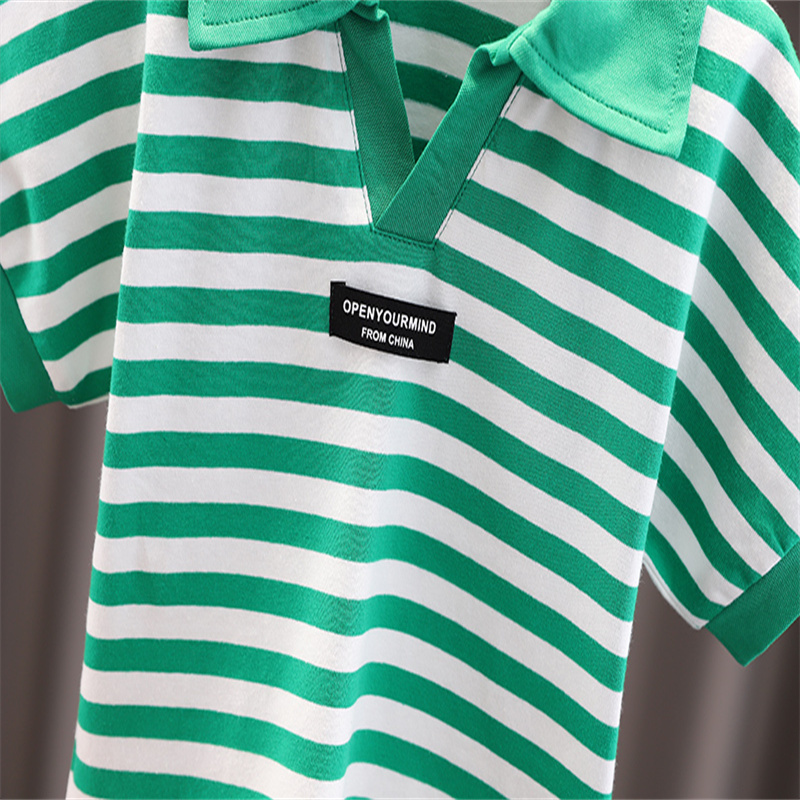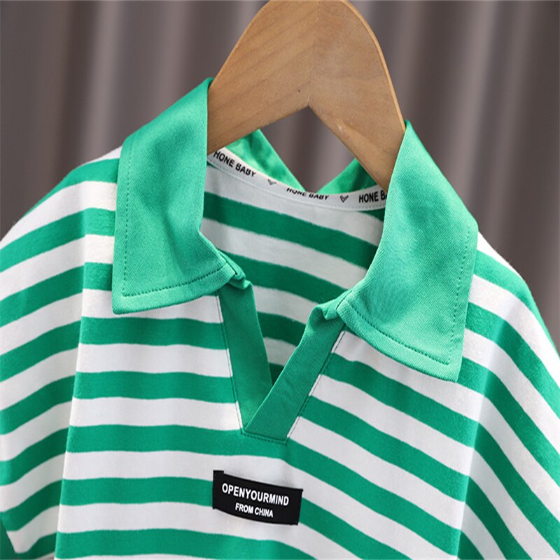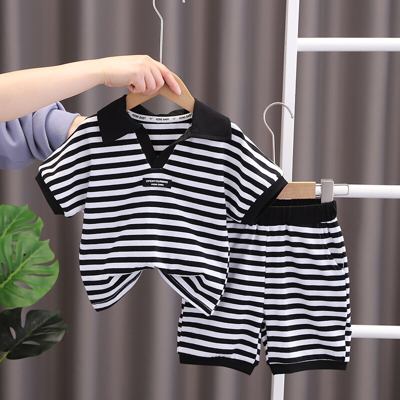 Новый летний детский комплект, Повседневная полосатая рубашка поло с принтом для мальчиков джинсовые шорты с короткими рукавами Модный комплект из двух предметов