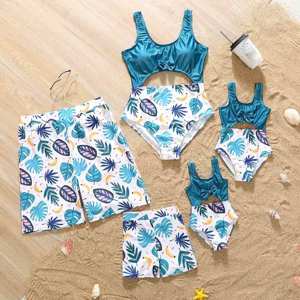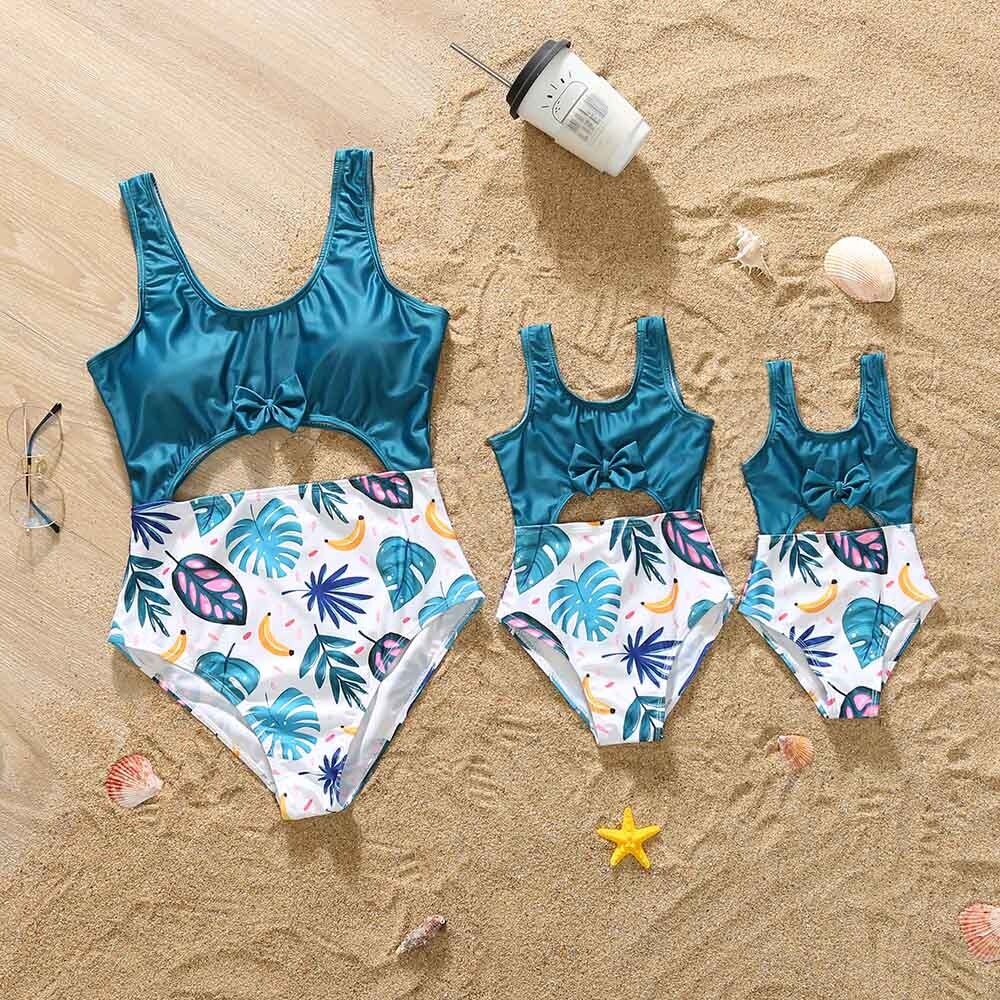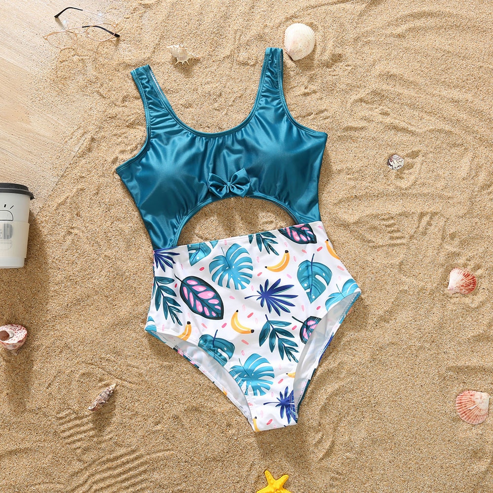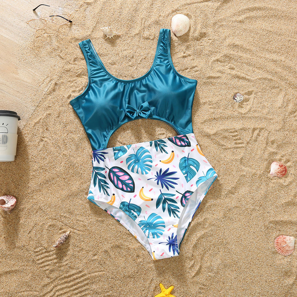 Новый летний костюм для отпуска на море, однотонный праздничный Повседневный слитный купальник с бантом и цветочным принтом, плавки для плавания