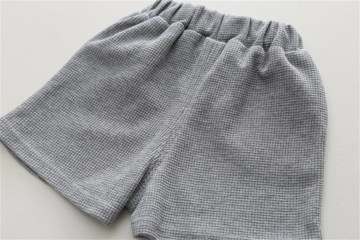 Новый летний Повседневный однотонный Детский комплект из двух предметов с короткими рукавами для мальчиков, Модный комплект в Корейском стиле, От 1 до 5 лет