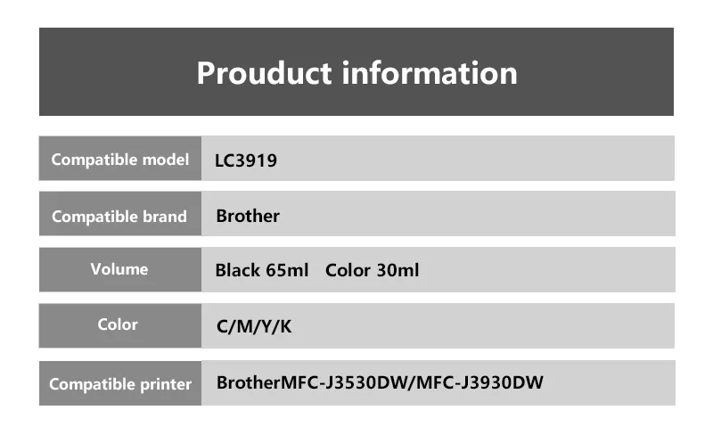 LC3919 Заправка картриджа, совместимого с принтером Brother MFC-J2330DW/MFC-J2730DW/MFC-J3530DW