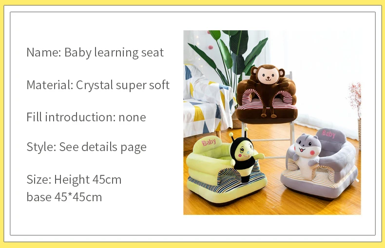 Новый милый мультфильмКожа дивана для младенцаЧехол для диванаСтул для обучения сидениюМоющийся только чехолС молнией без полипропиленового хлопка