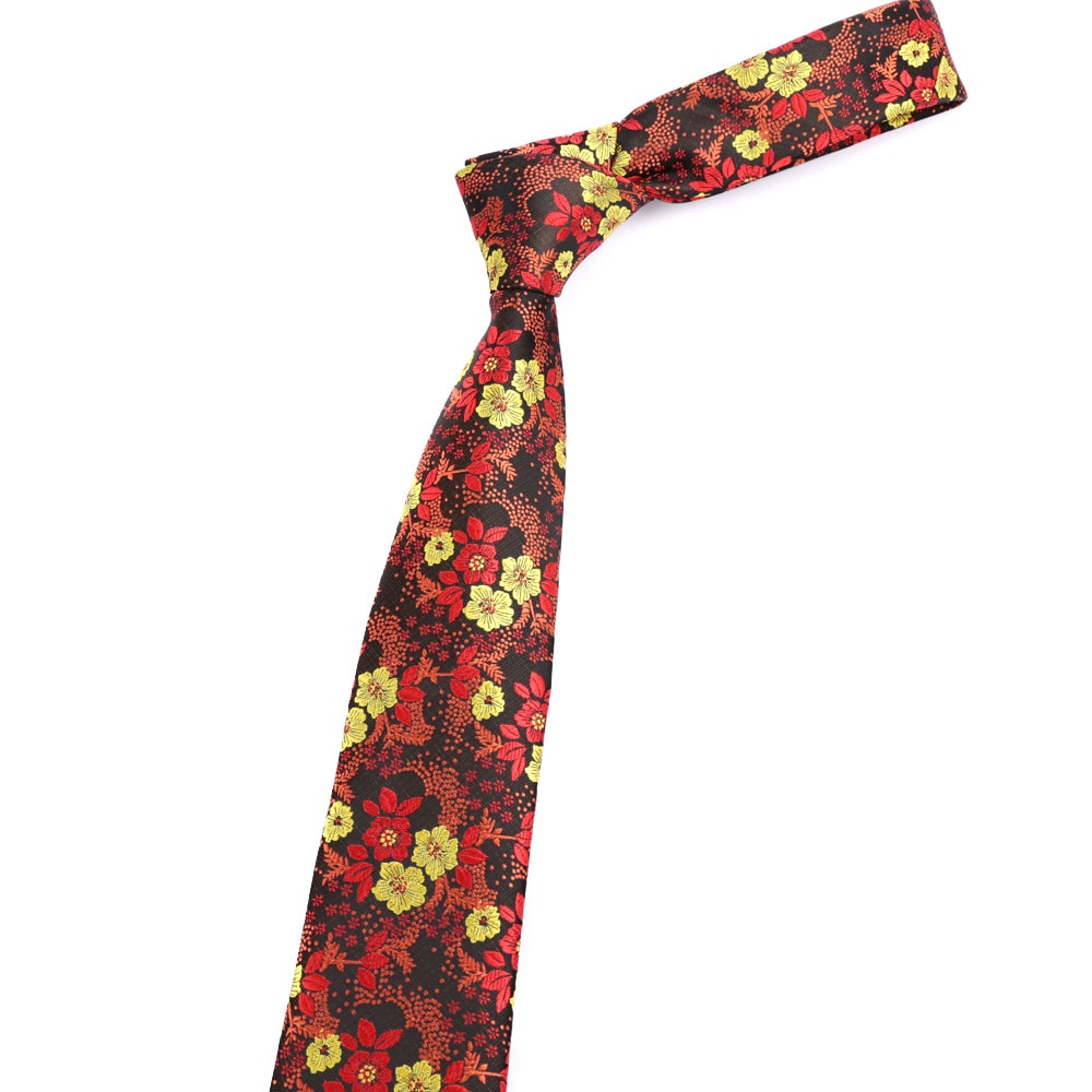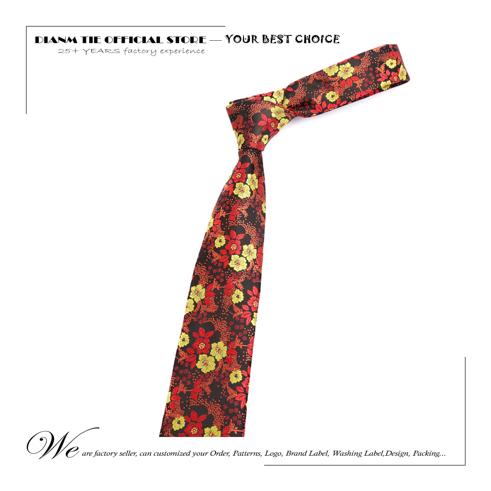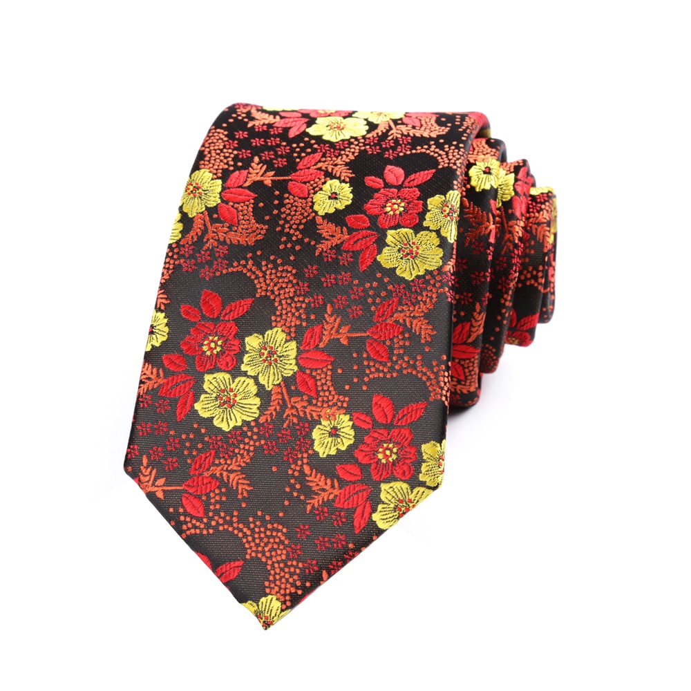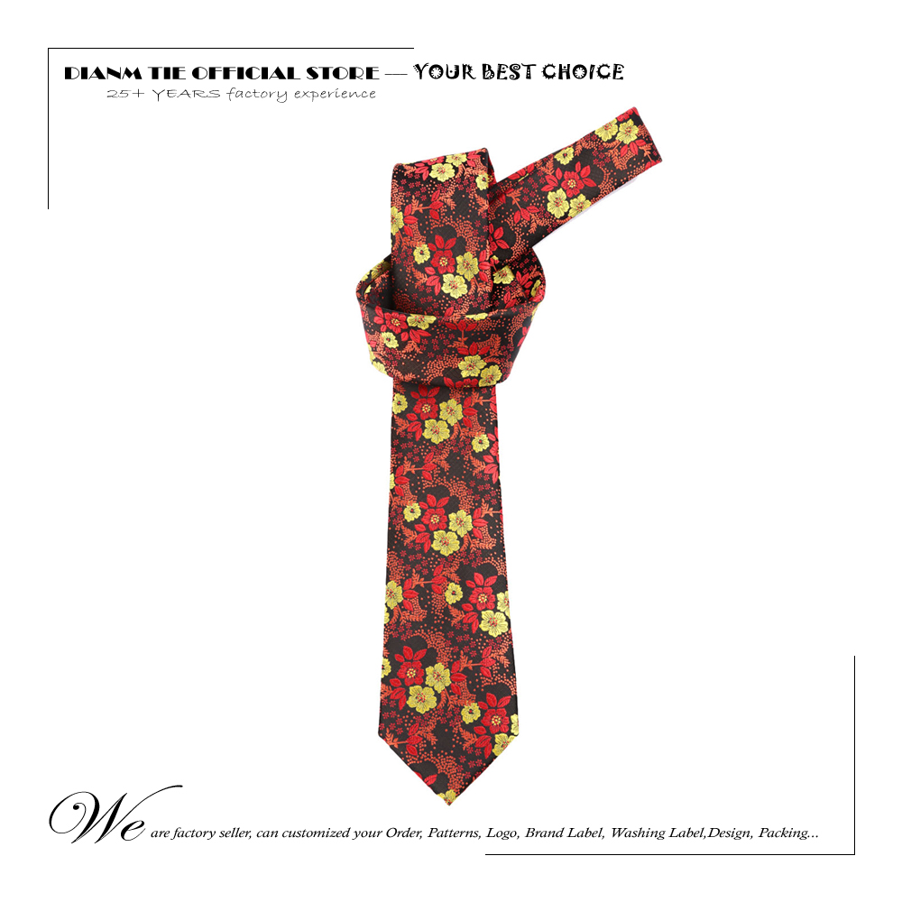 Новый мужской галстук 7 см красный с желтыми цветами, галстуки для мужчин из полиэстера