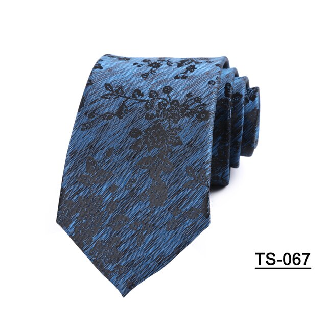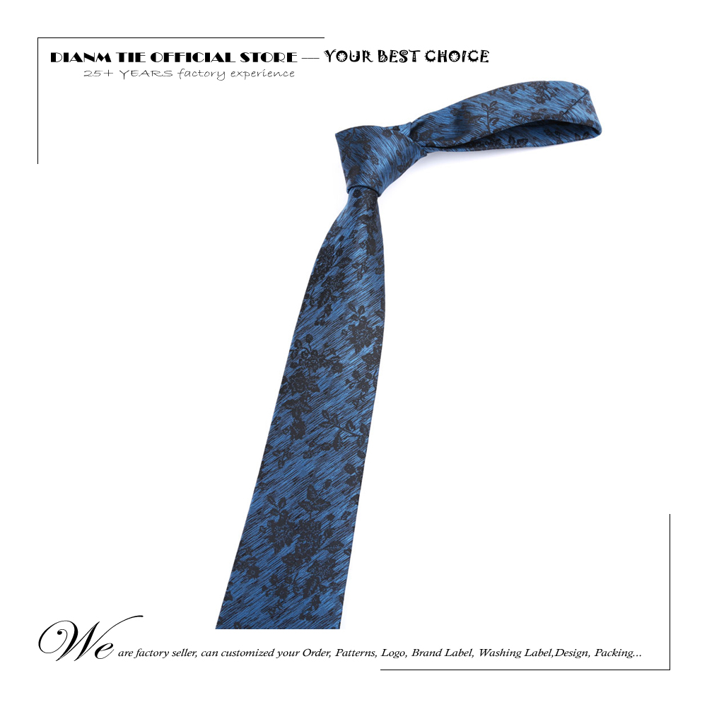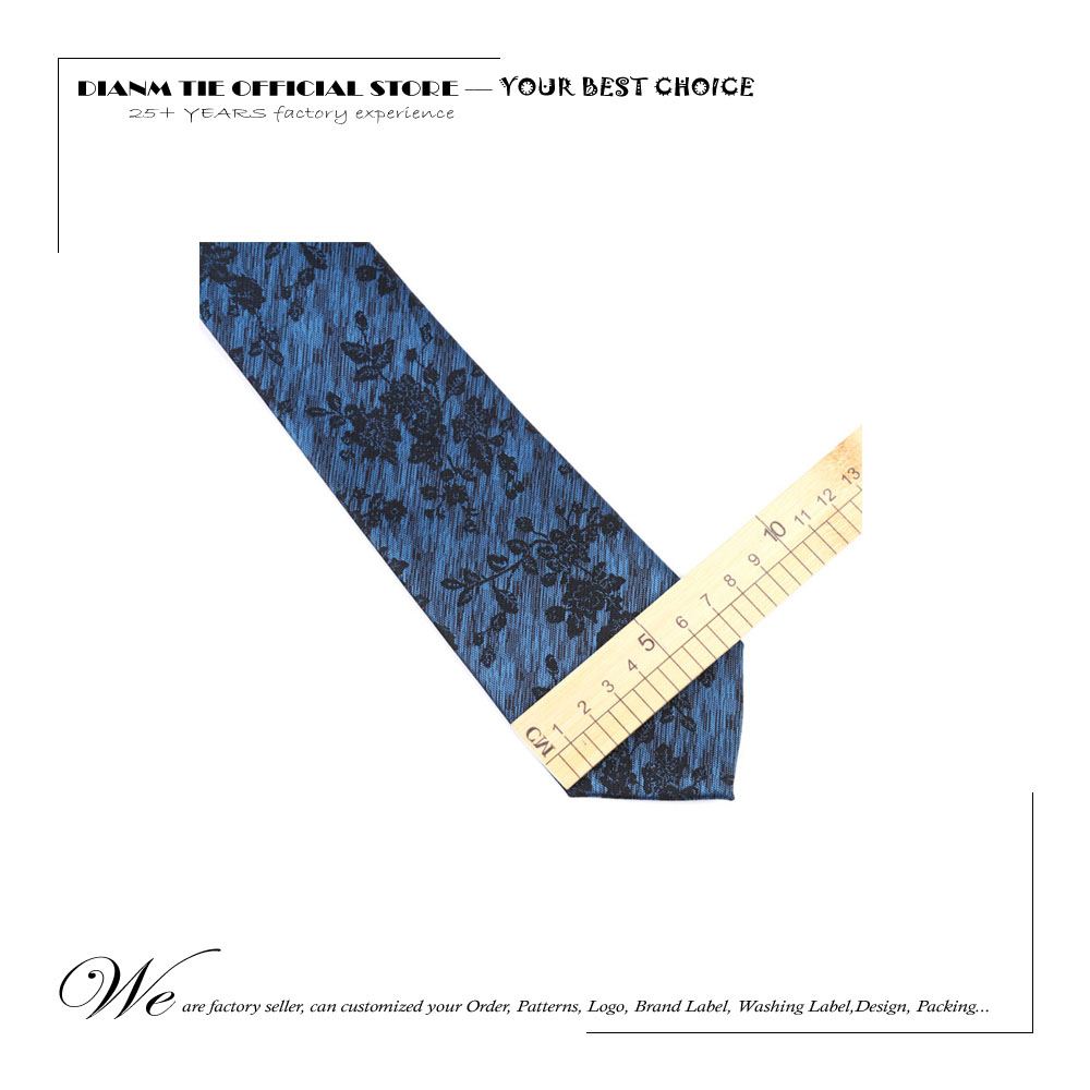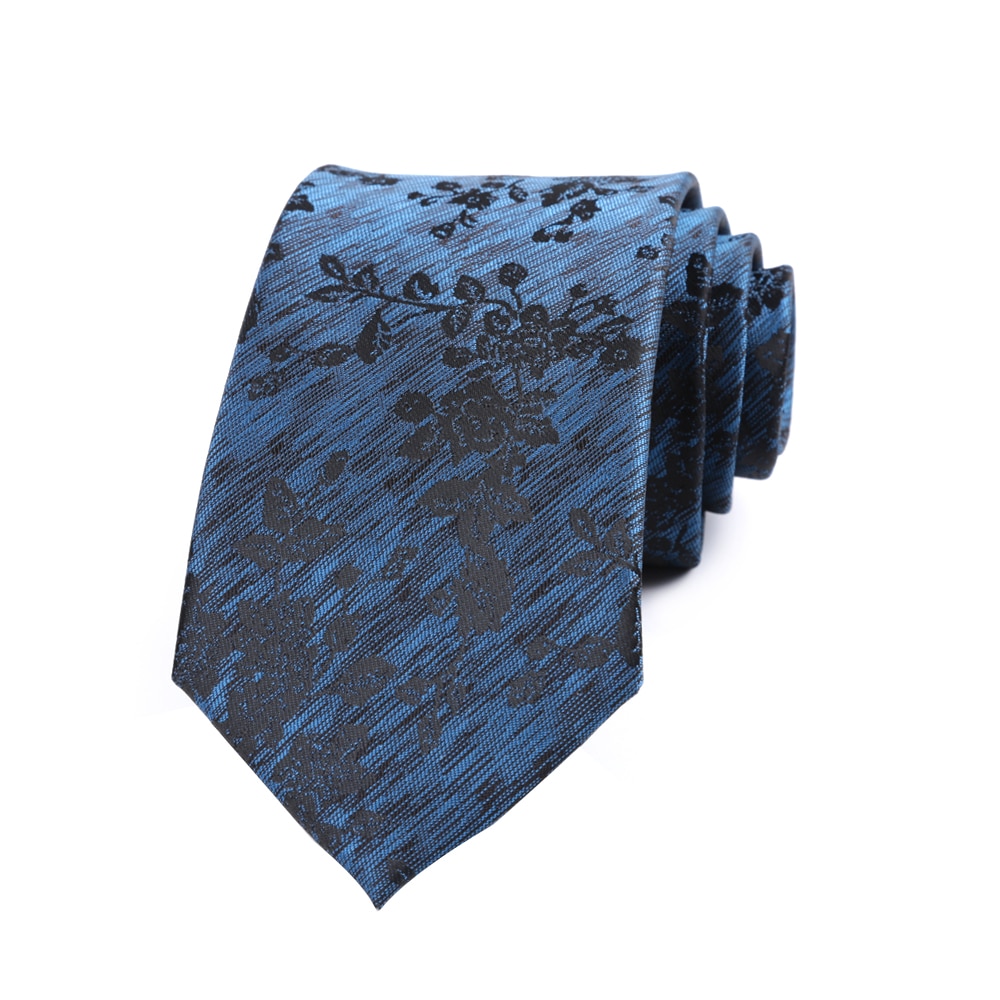 Новый мужской галстук 7 см синий с черными цветами, галстуки для мужчин из полиэстера, искусственная кожа, свадебные деловые, праздничные Галстуки