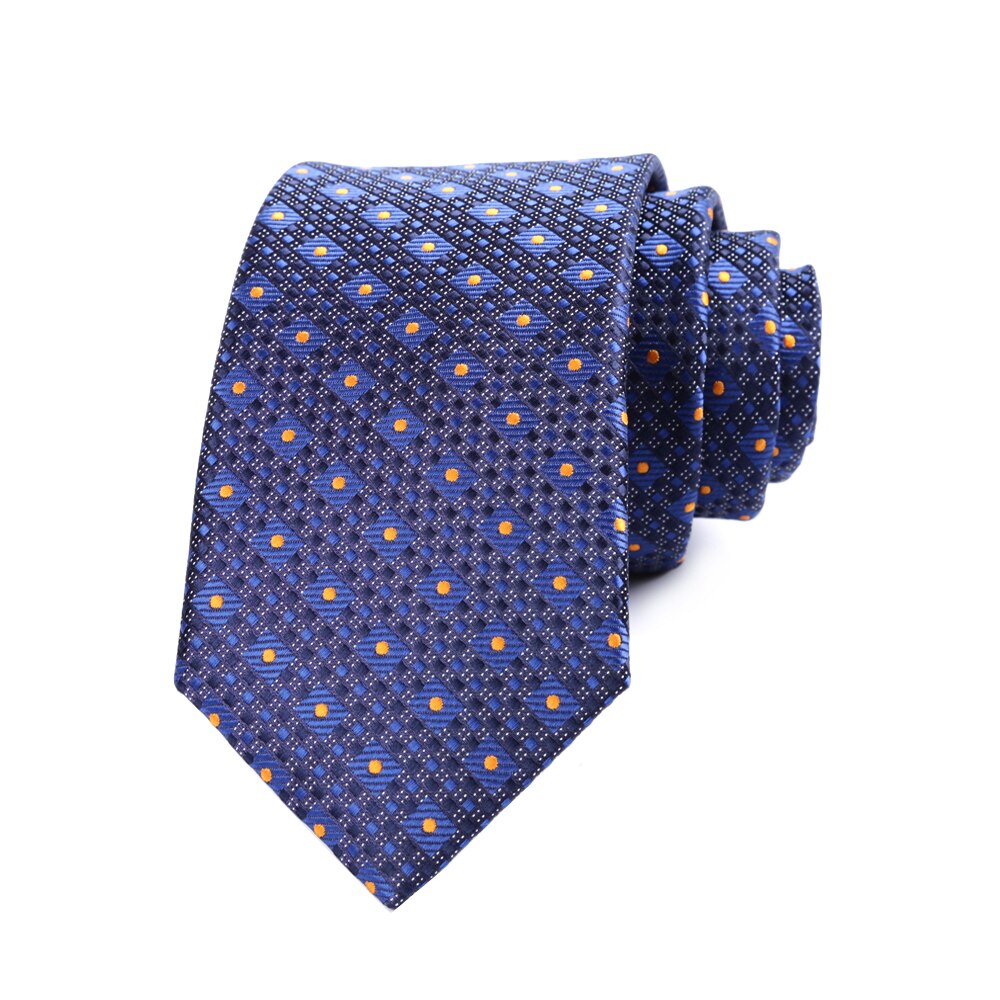 Новый мужской галстук 7 см темно-синий W/золотистый галстук в горошек, мужские галстуки для свадьбы из полиэстера, мужские деловые галстуки