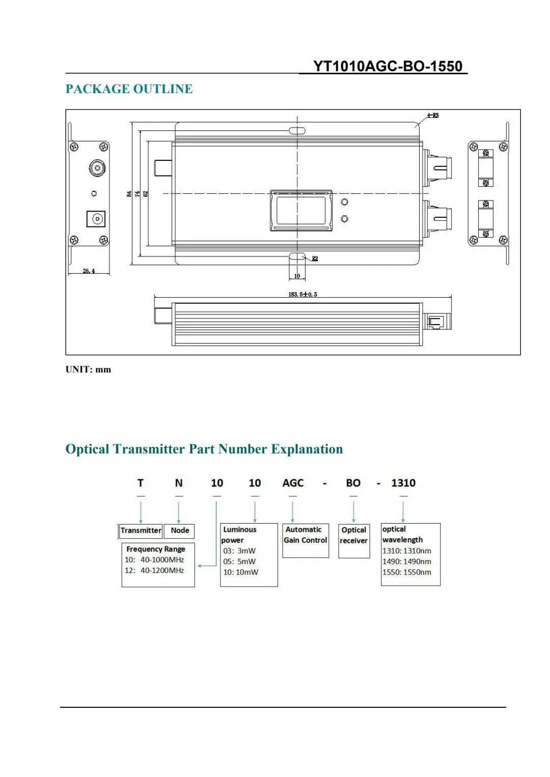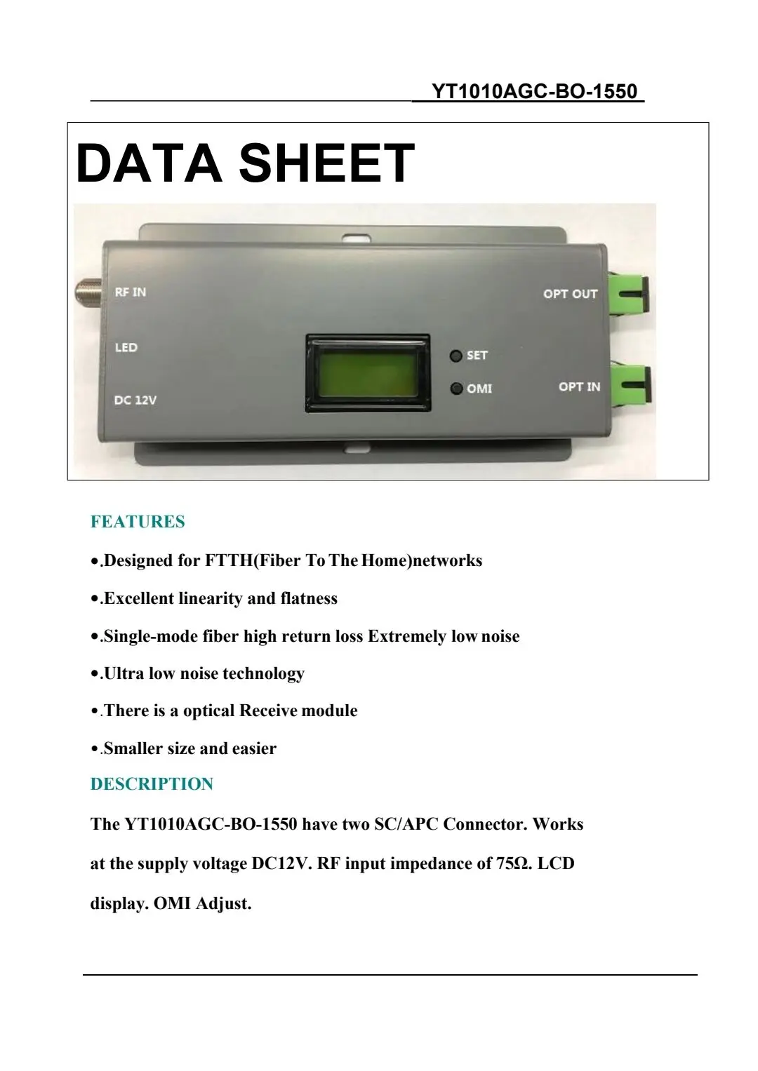 Модель: 1010AGC-BO-1550, передатчик стекловолокна с прямой модуляцией с AGC