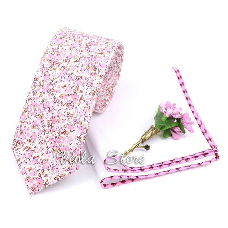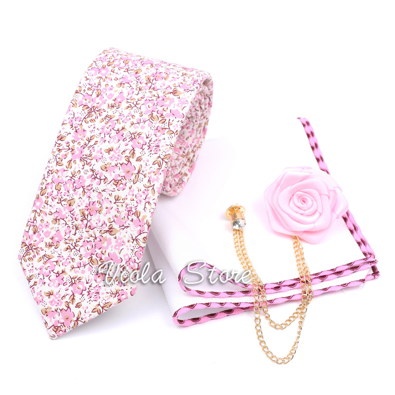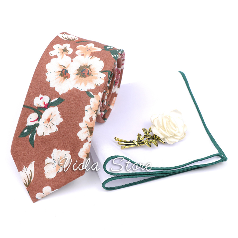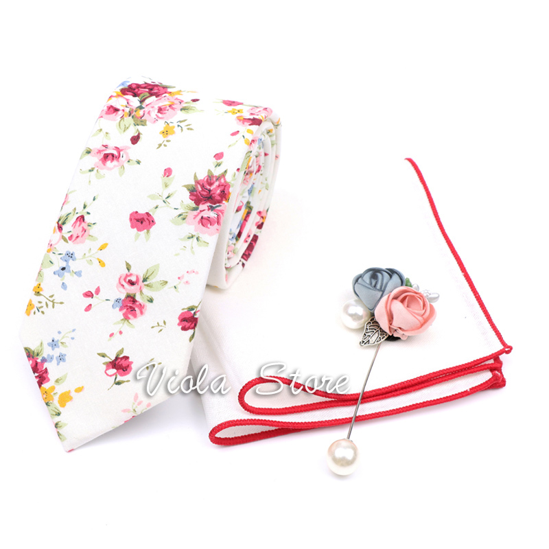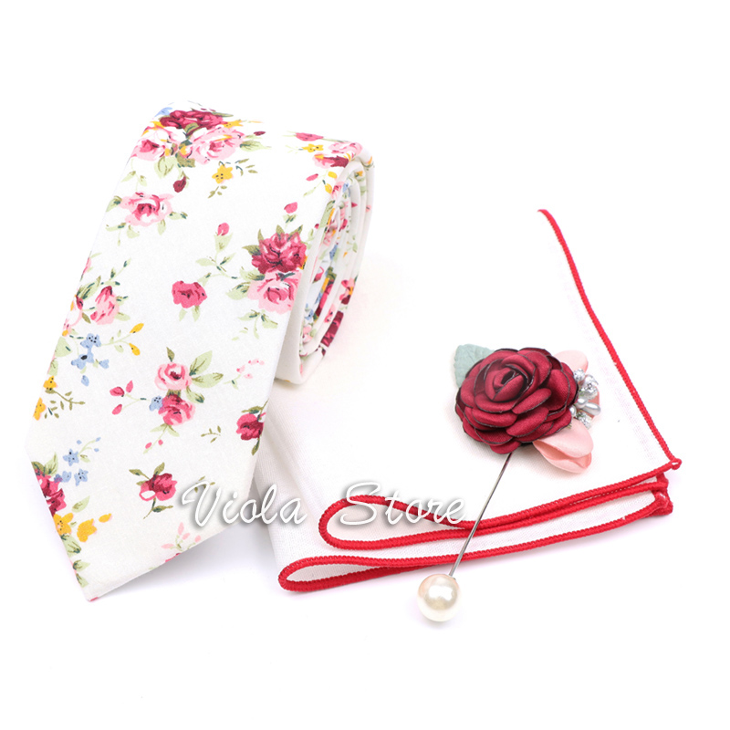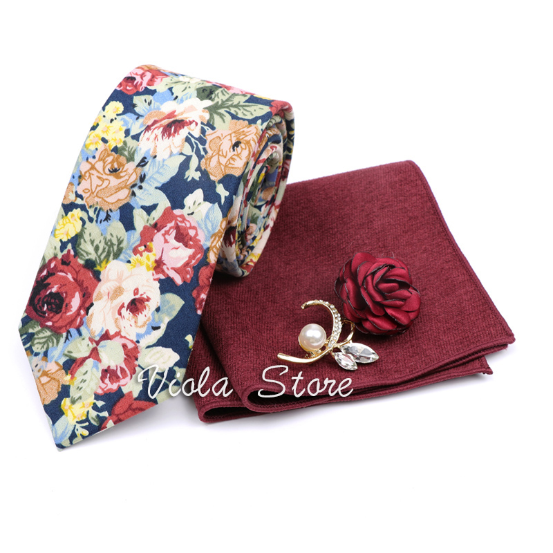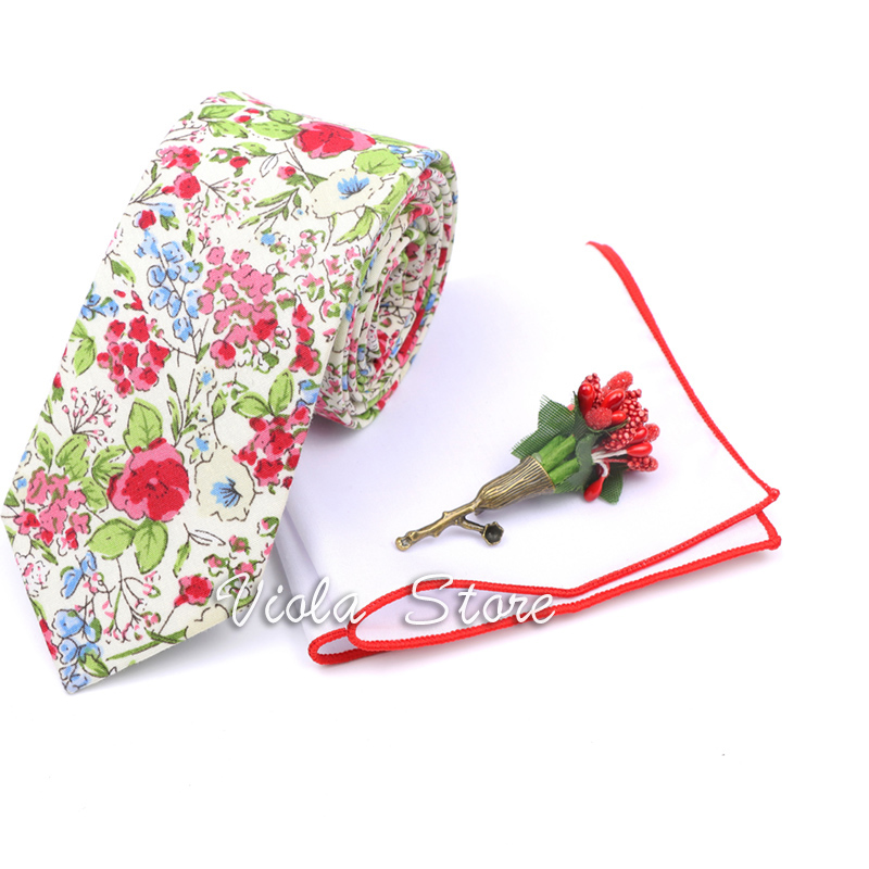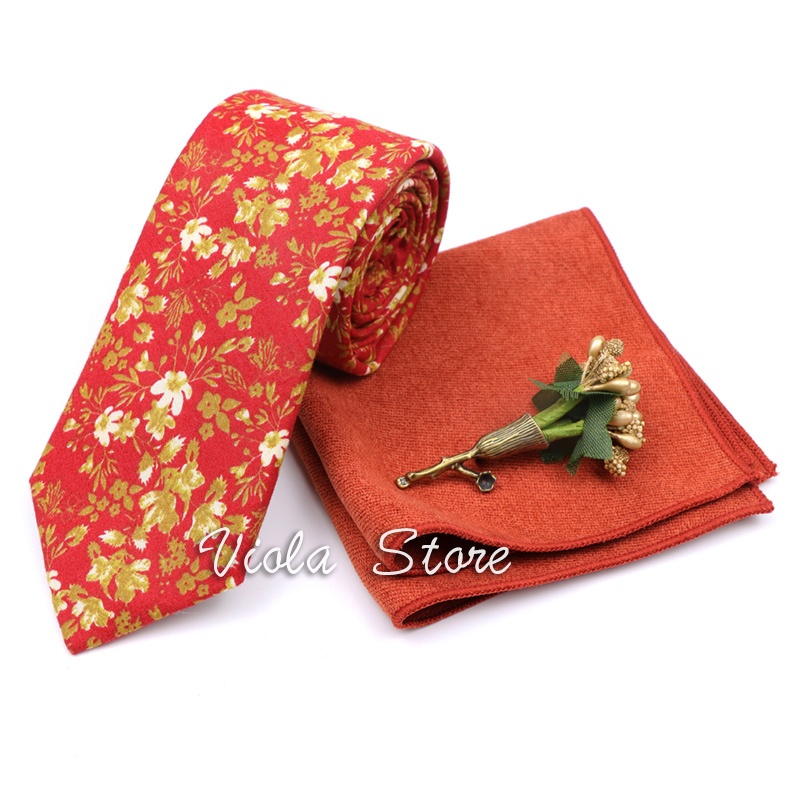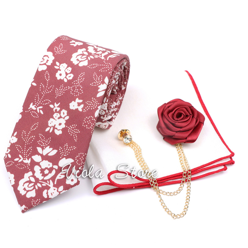 Новый Популярный хлопковый комплект с цветочным принтом с высокой подошвой 6,5 см, галстук, брошь, Карманный платок, мужской классический красный платок для свадебной вечеринки, Подарочный аксессуар