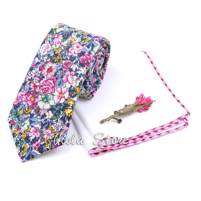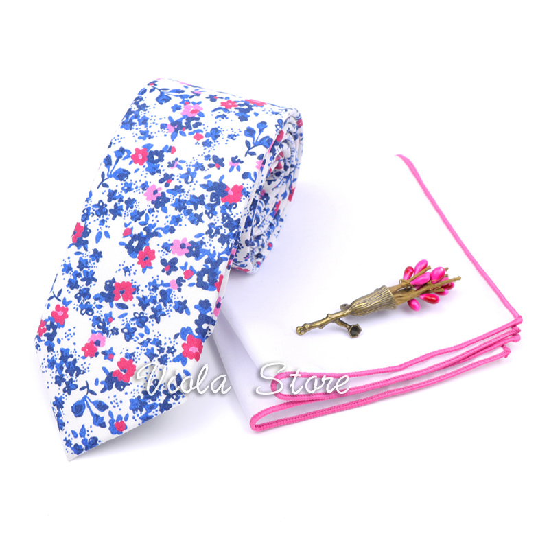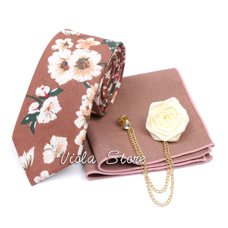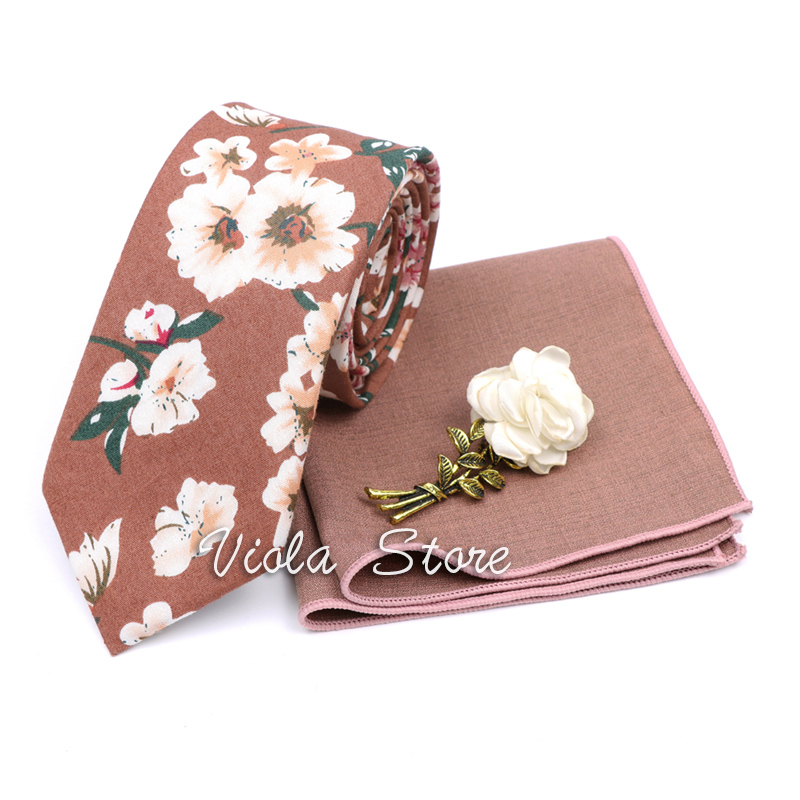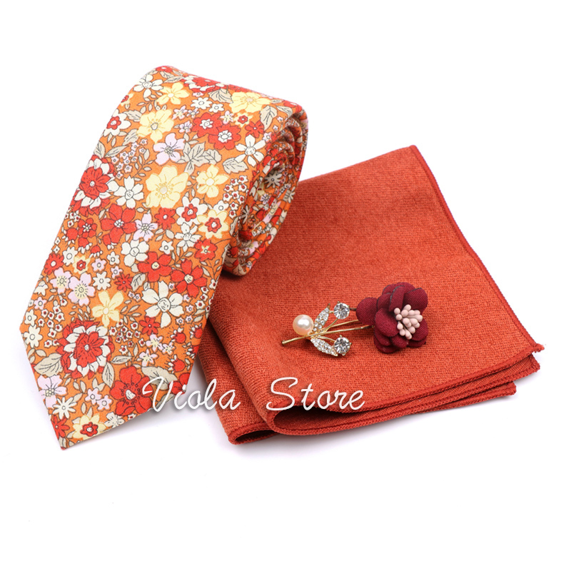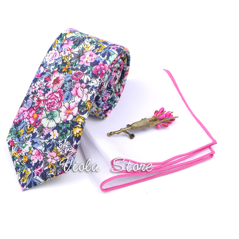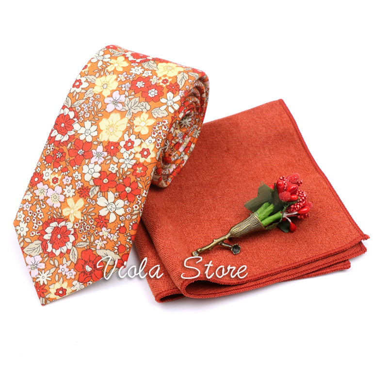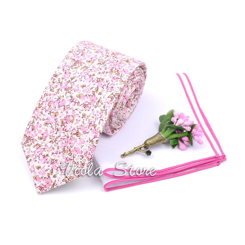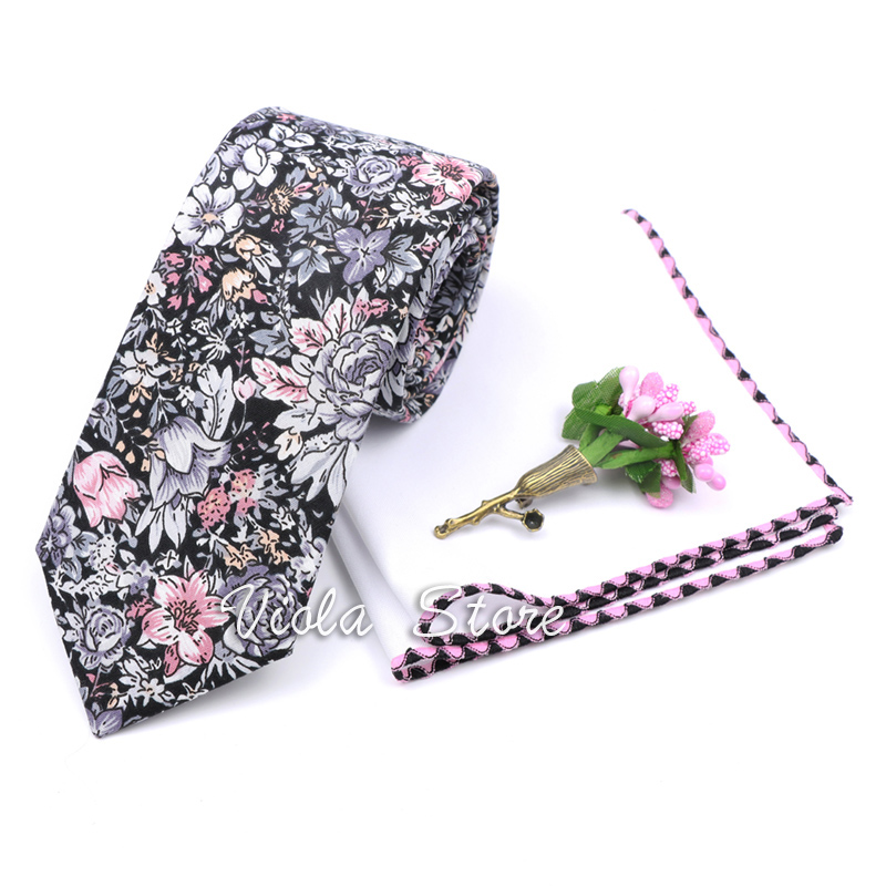 Новый Популярный хлопковый комплект с цветочным принтом с высокой подошвой 6,5 см, галстук, брошь, Карманный платок, мужской классический красный платок для свадебной вечеринки, Подарочный аксессуар