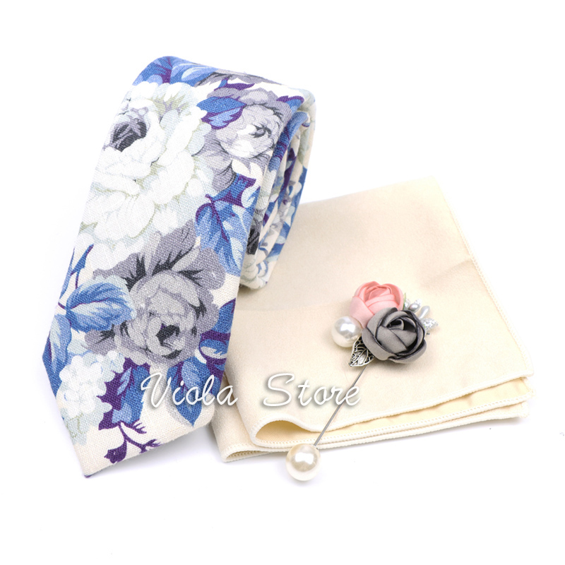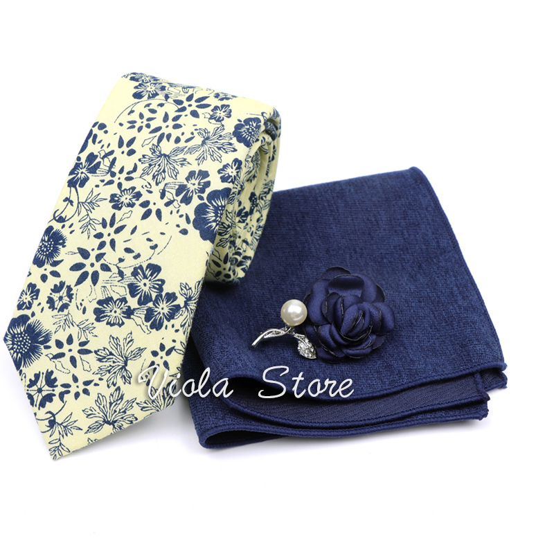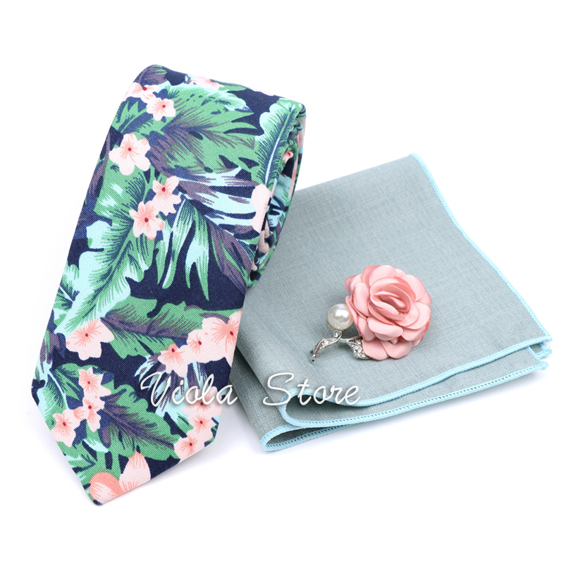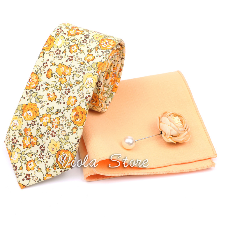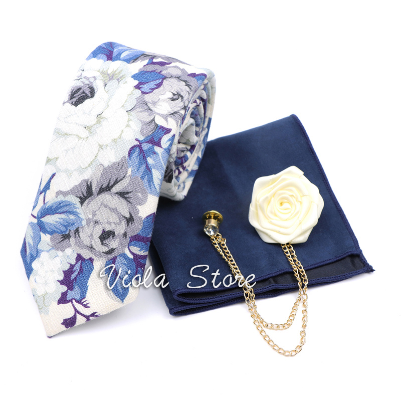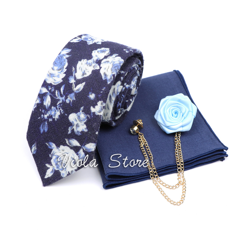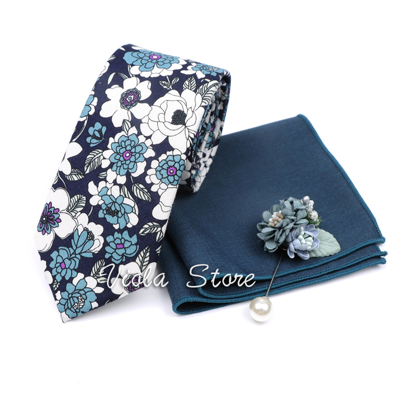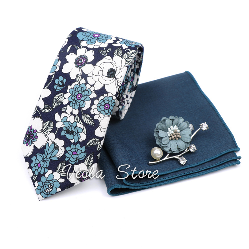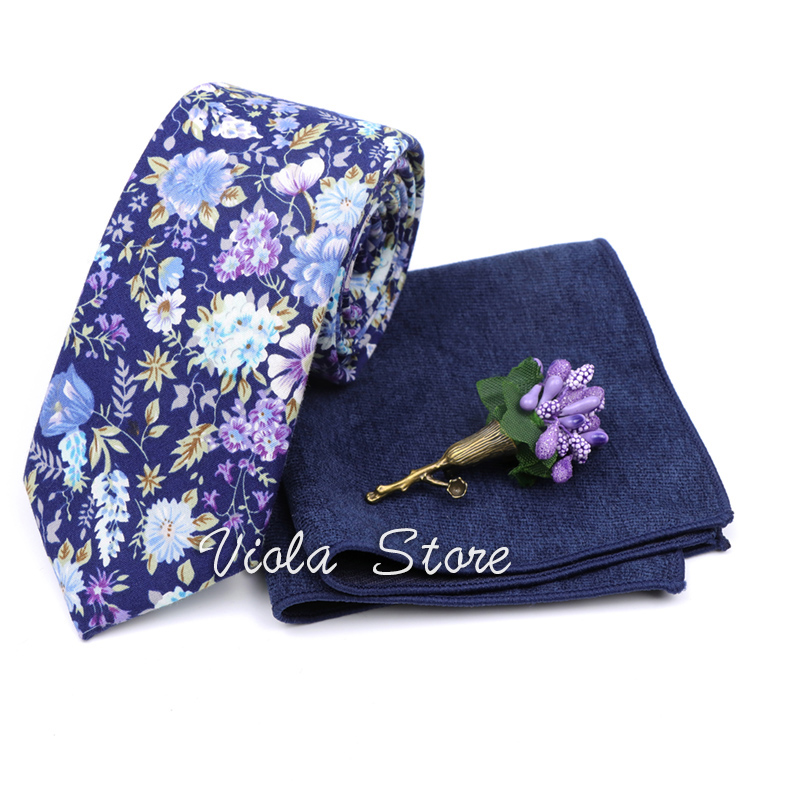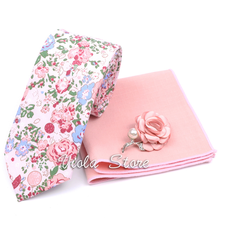 Новый Популярный хлопковый комплект с цветочным принтом с высокой подошвой 6,5 см, галстук, брошь, Карманный платок, мужской классический красный платок для свадебной вечеринки, Подарочный аксессуар