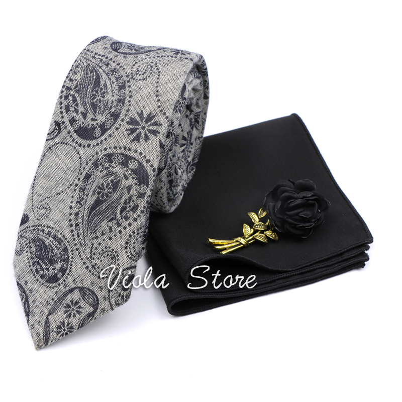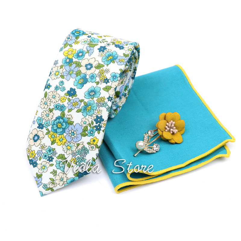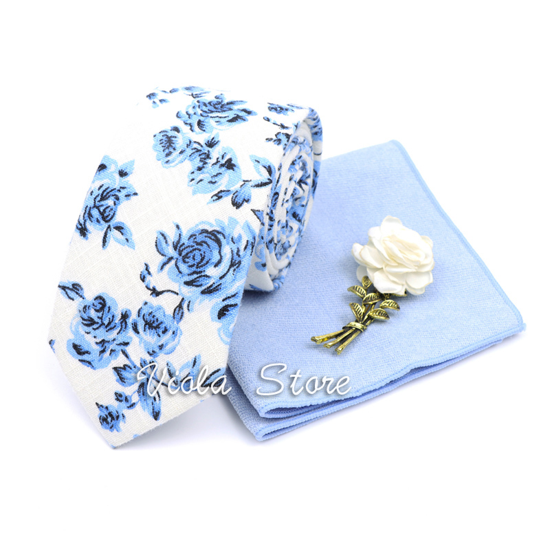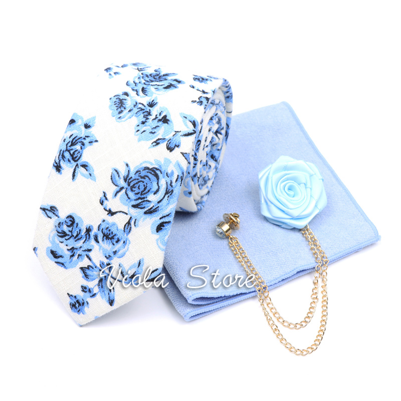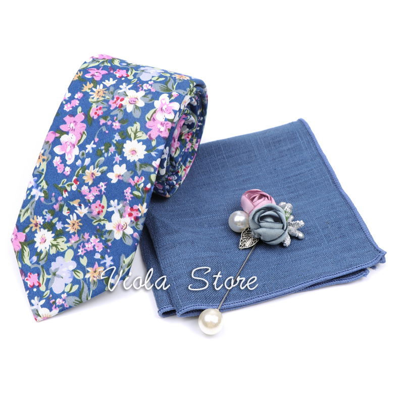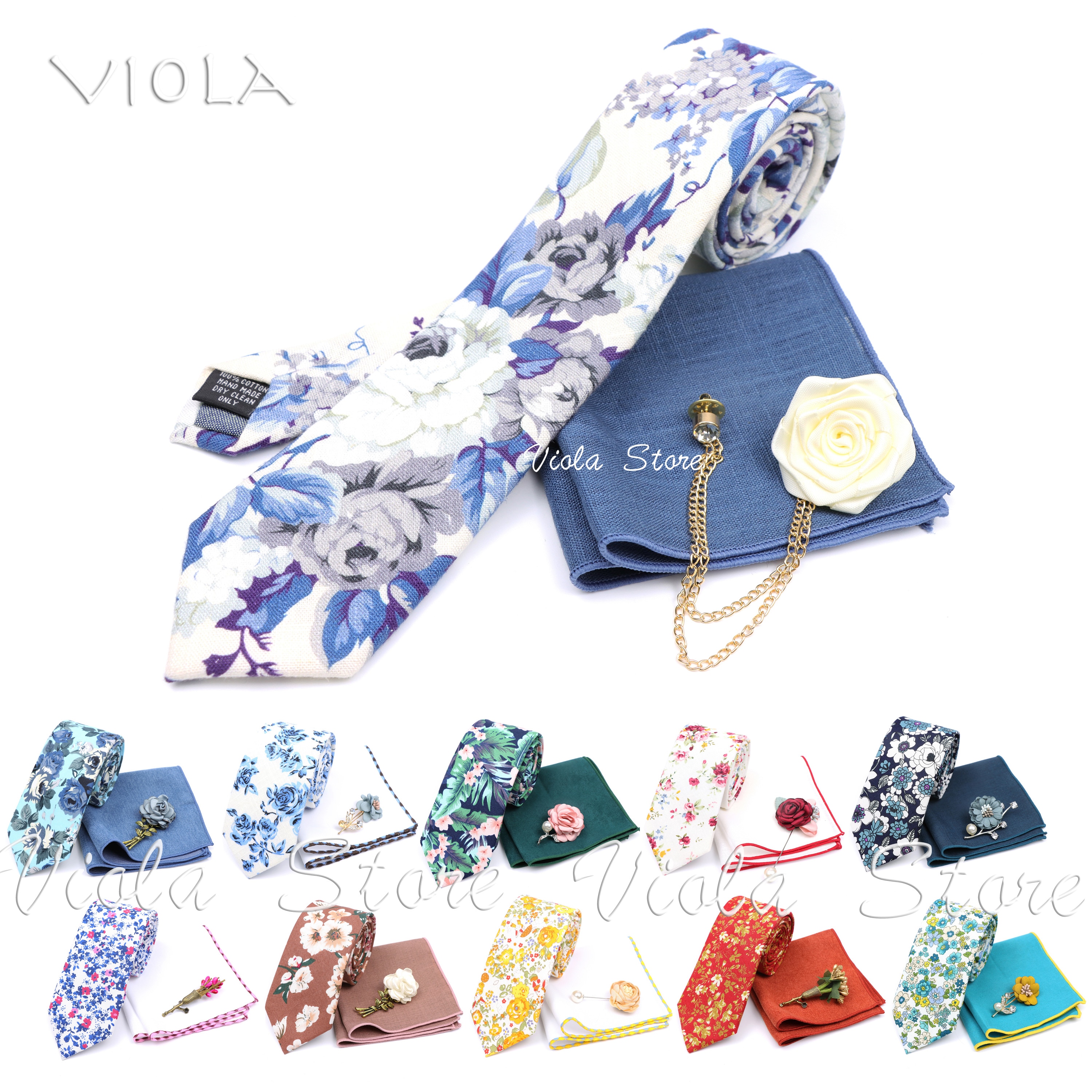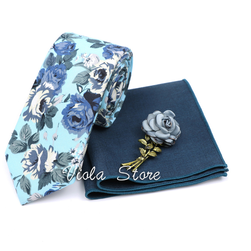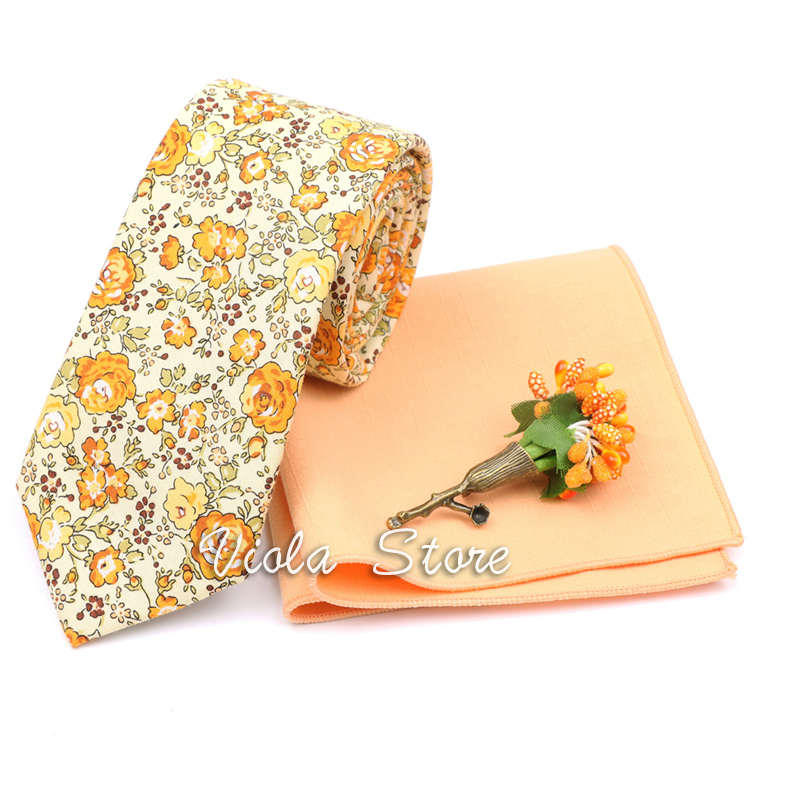 Новый Популярный хлопковый комплект с цветочным принтом с высокой подошвой 6,5 см, галстук, брошь, Карманный платок, мужской классический красный платок для свадебной вечеринки, Подарочный аксессуар