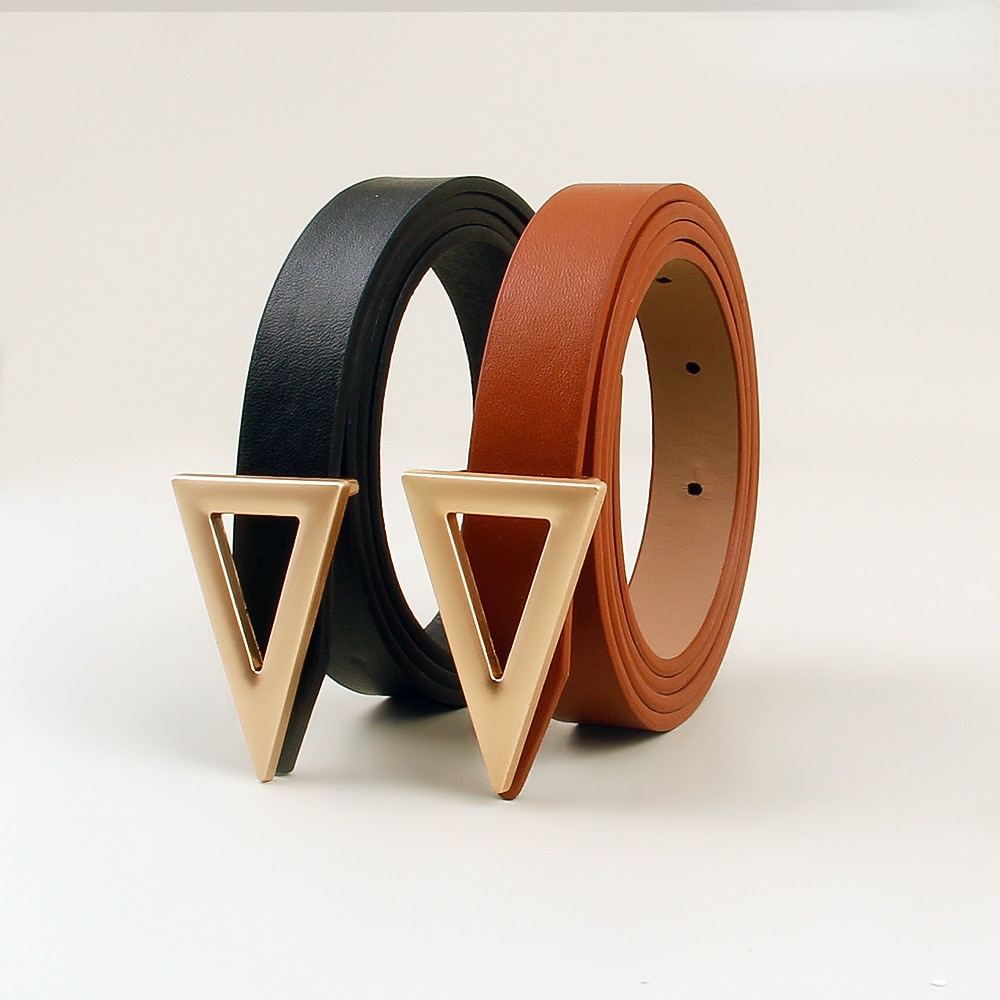 Новый ремень для женщин металлический треугольный ремень с пуговицами Роскошный дизайнерский ремень из джинсовой ткани женский ремень
