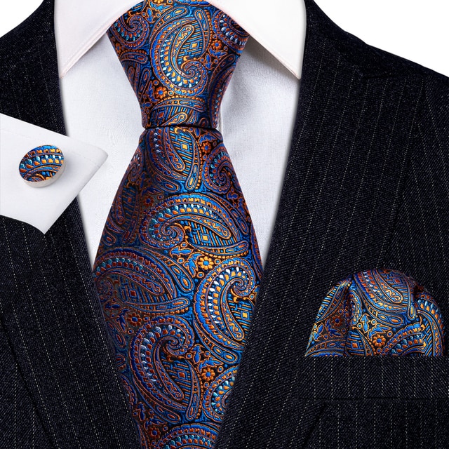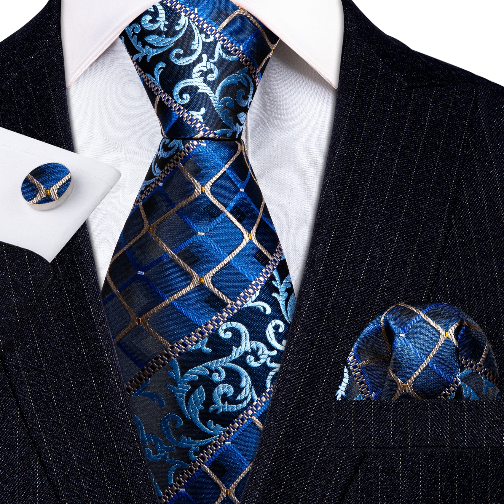 Новый синий клетчатый Шелковый мужской галстук свадебный подарок Barry.Wang Designer 3 шт. Галстук носовой платок Набор Запонок деловой Жених LN-5810