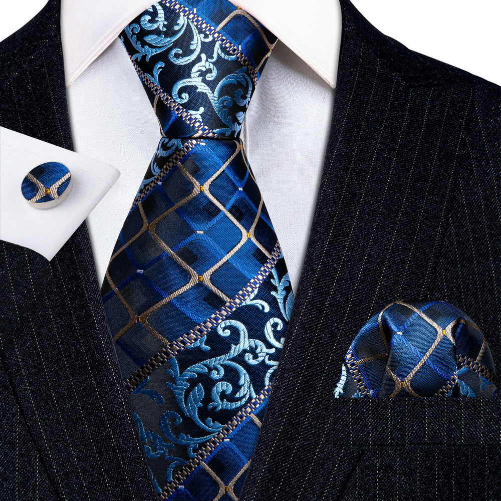 Новый синий клетчатый Шелковый мужской галстук свадебный подарок Барри. Ван дизайнерский 3 шт Галстук платок Запонки Набор Бизнес жениха LN-5810