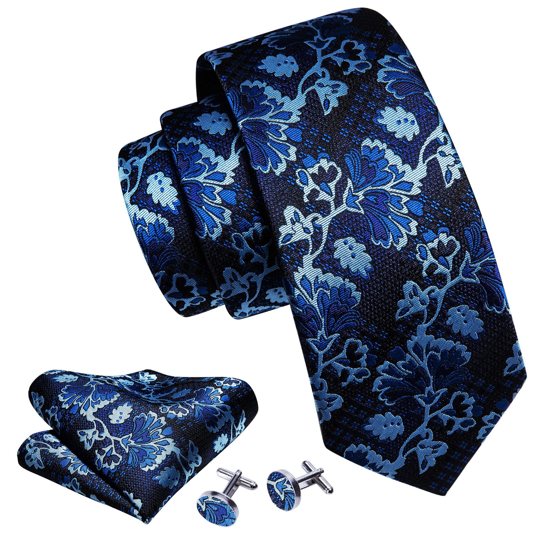 Новый темно-синий Шелковый мужской галстук с цветочным рисунком свадебный подарок Barry.Wang Designer 3 шт. Галстук, платок, запонки, набор деловых жениха LN-5808