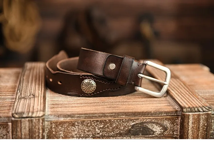 Топ толстый кожаный Ретро Роскошный дизайнерский мужской ремень ручной работы универсальные повседневные джинсы мягкий значок с заклепками кожаный ремень 3,8 см