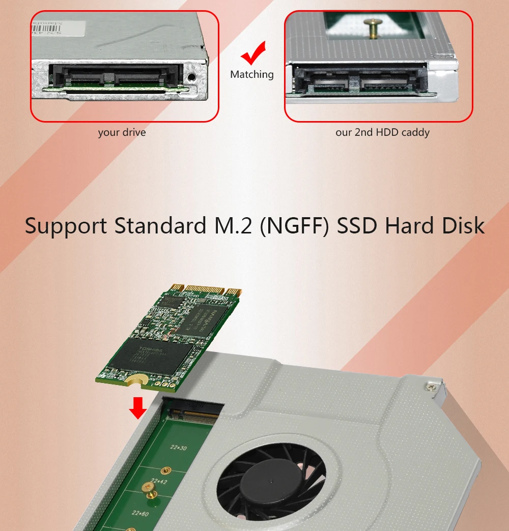 7) Поддержка M.2.NGFF SSD, подходит для ноутбука с оптическим разъемом SATA.