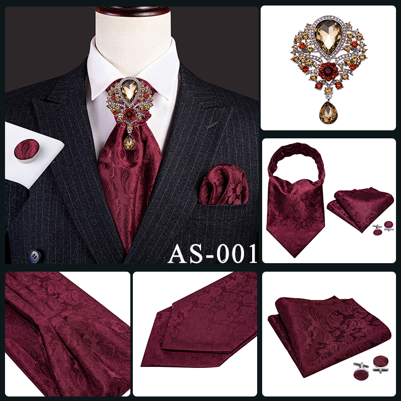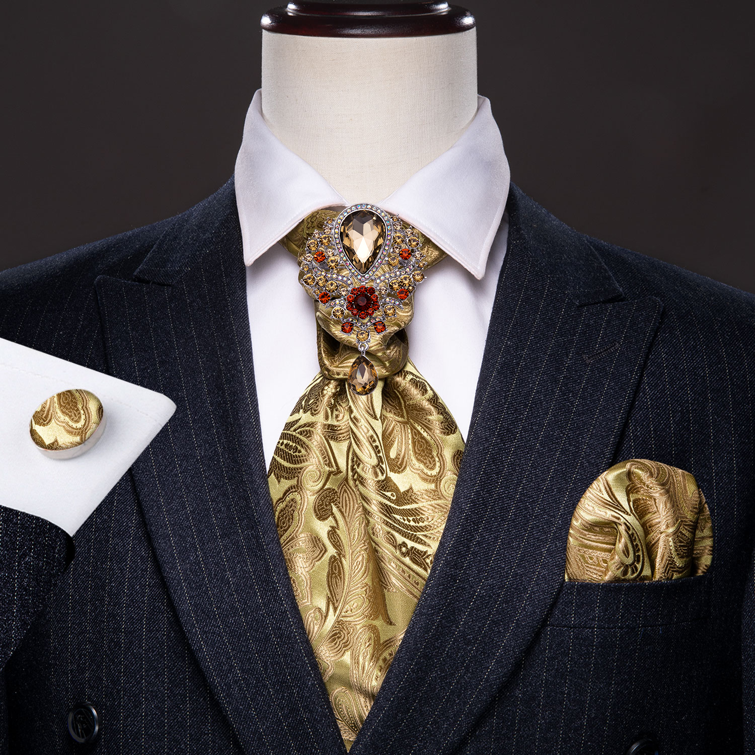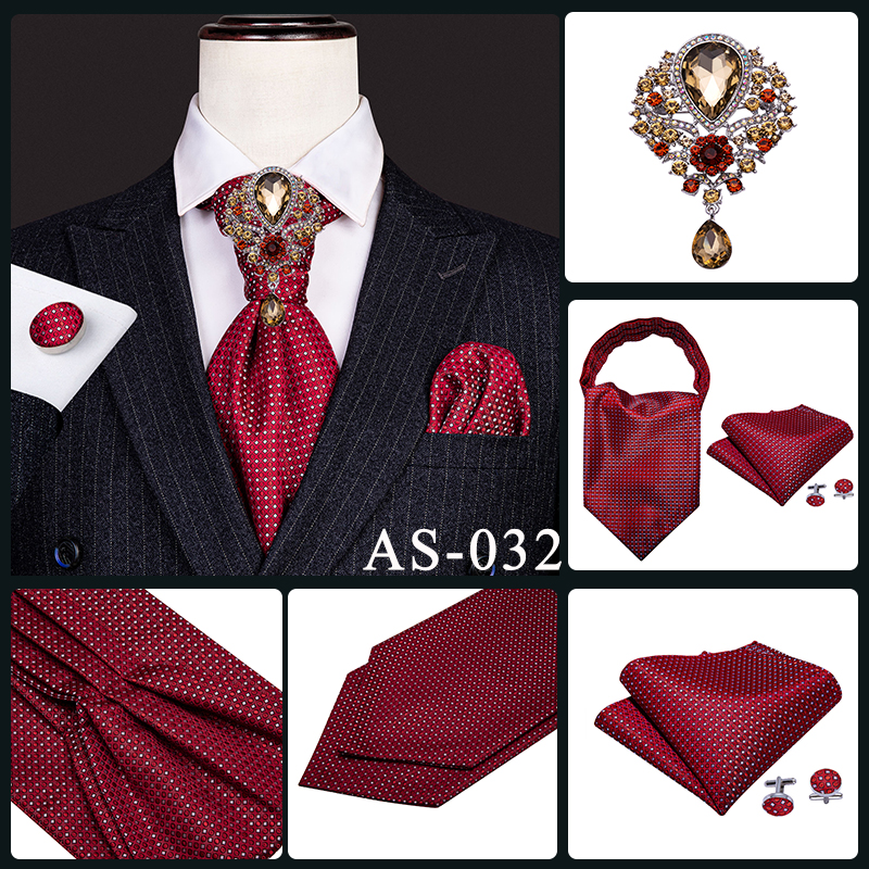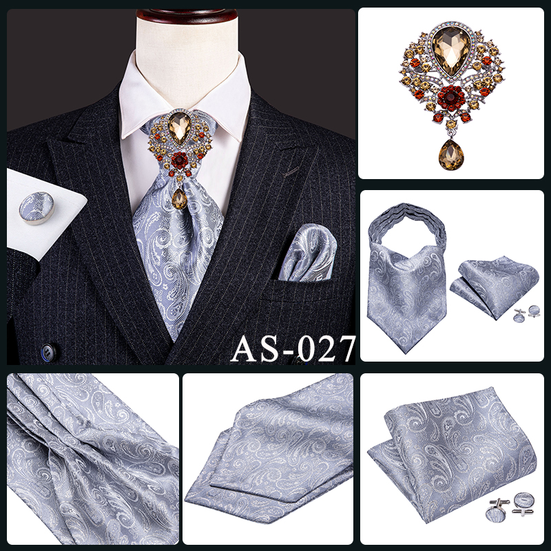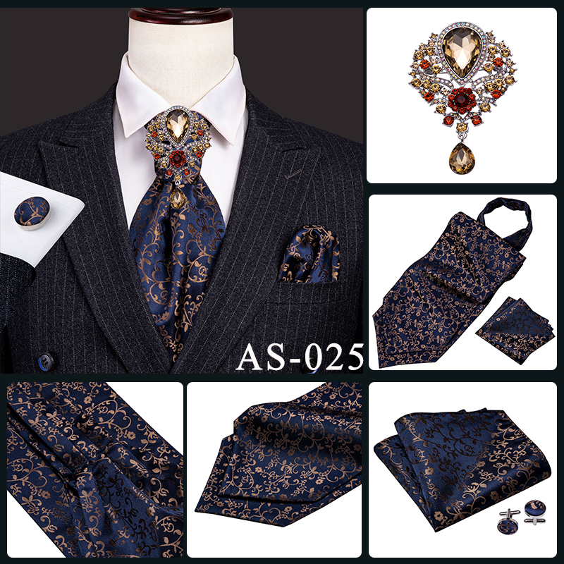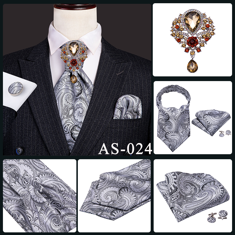 Packing Men Ascot Tie + Handkerchief + Cufflinks+Brooch
