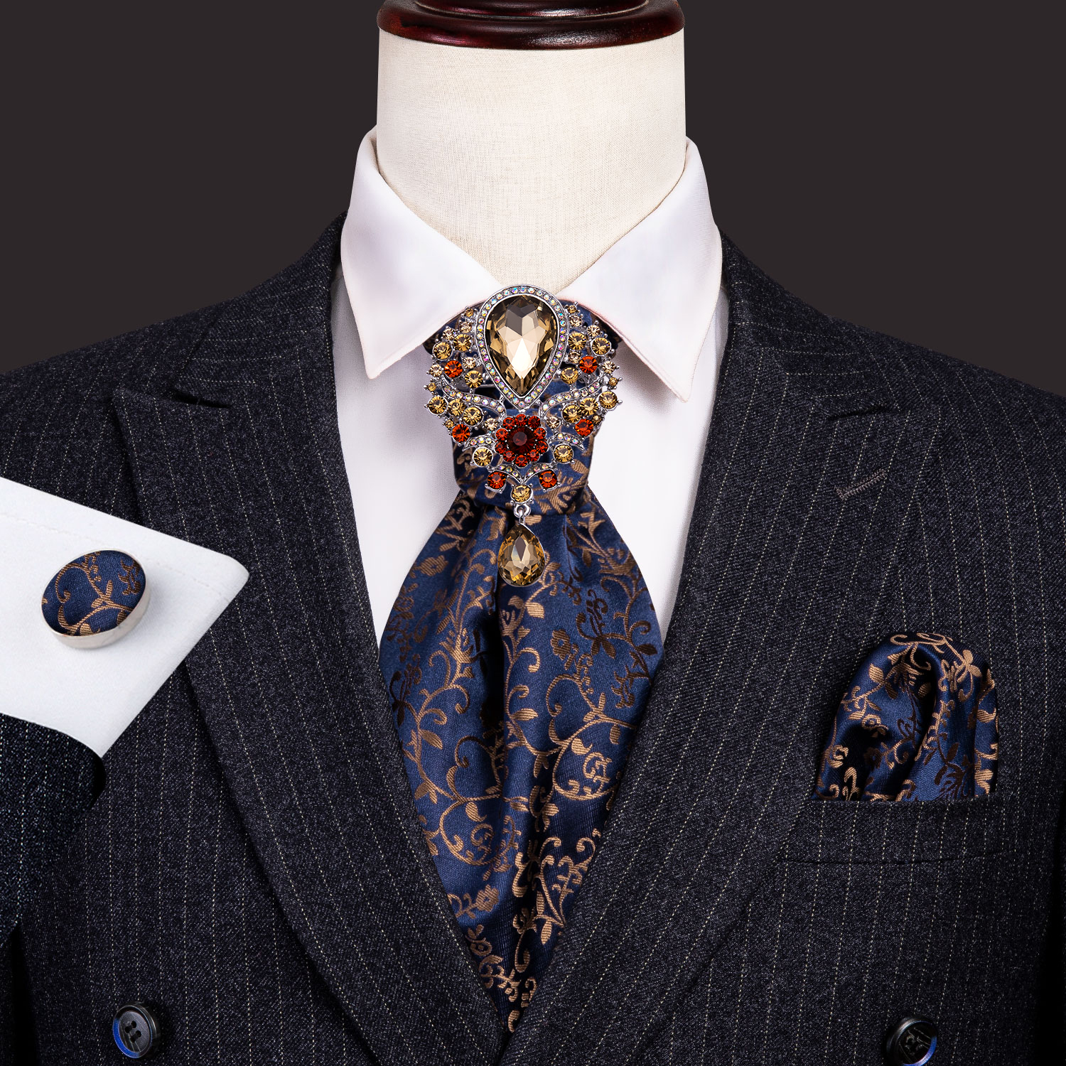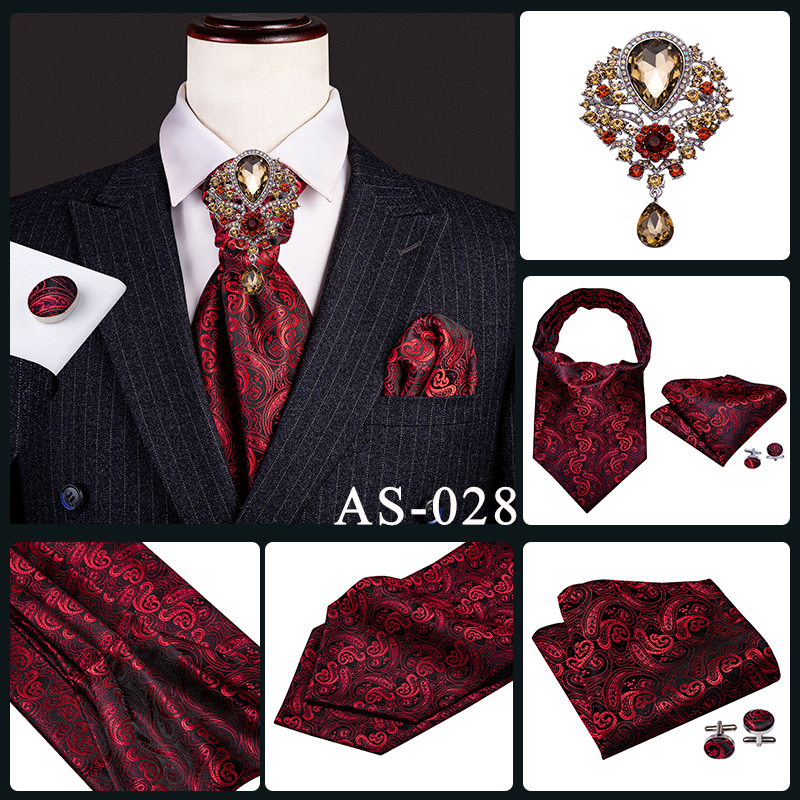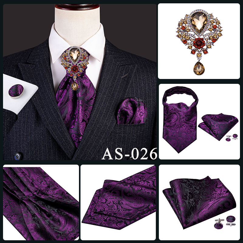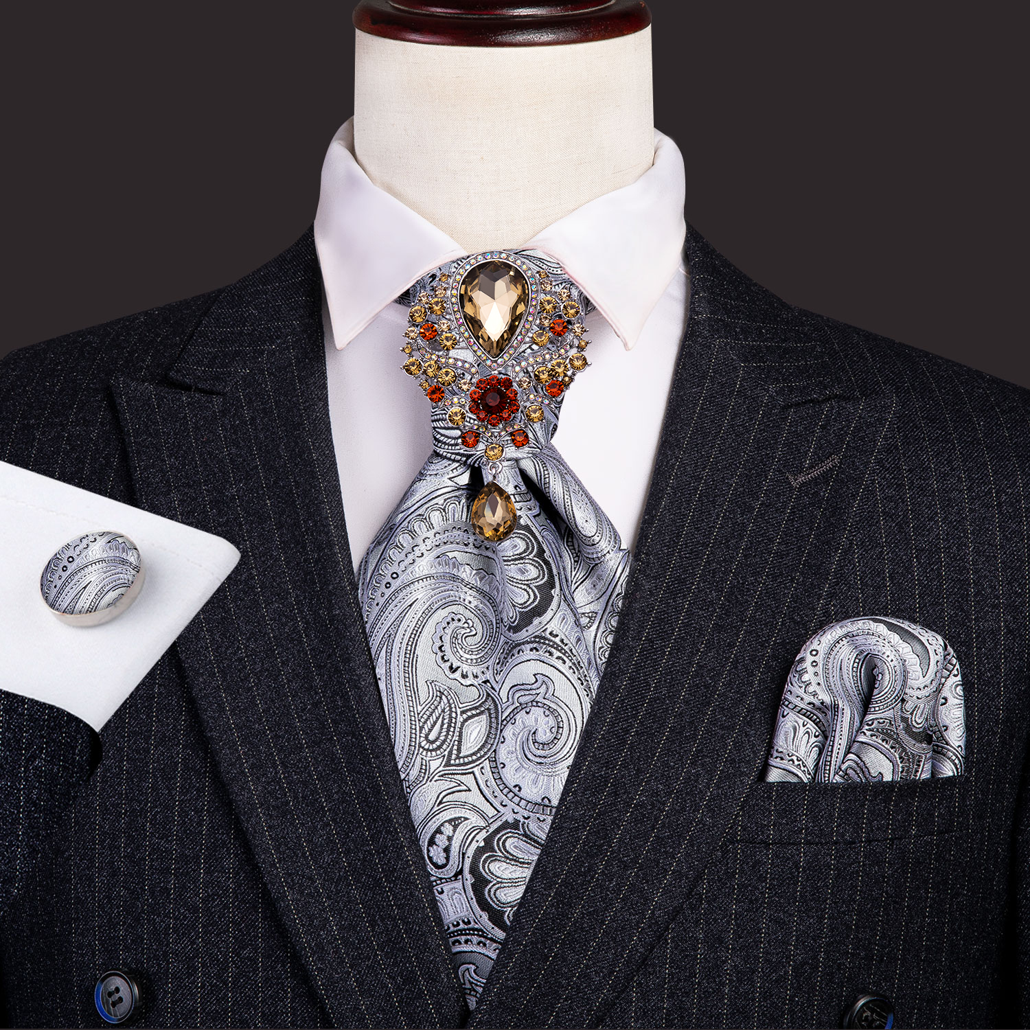 Packing Men Ascot Tie + Handkerchief + Cufflinks+Brooch