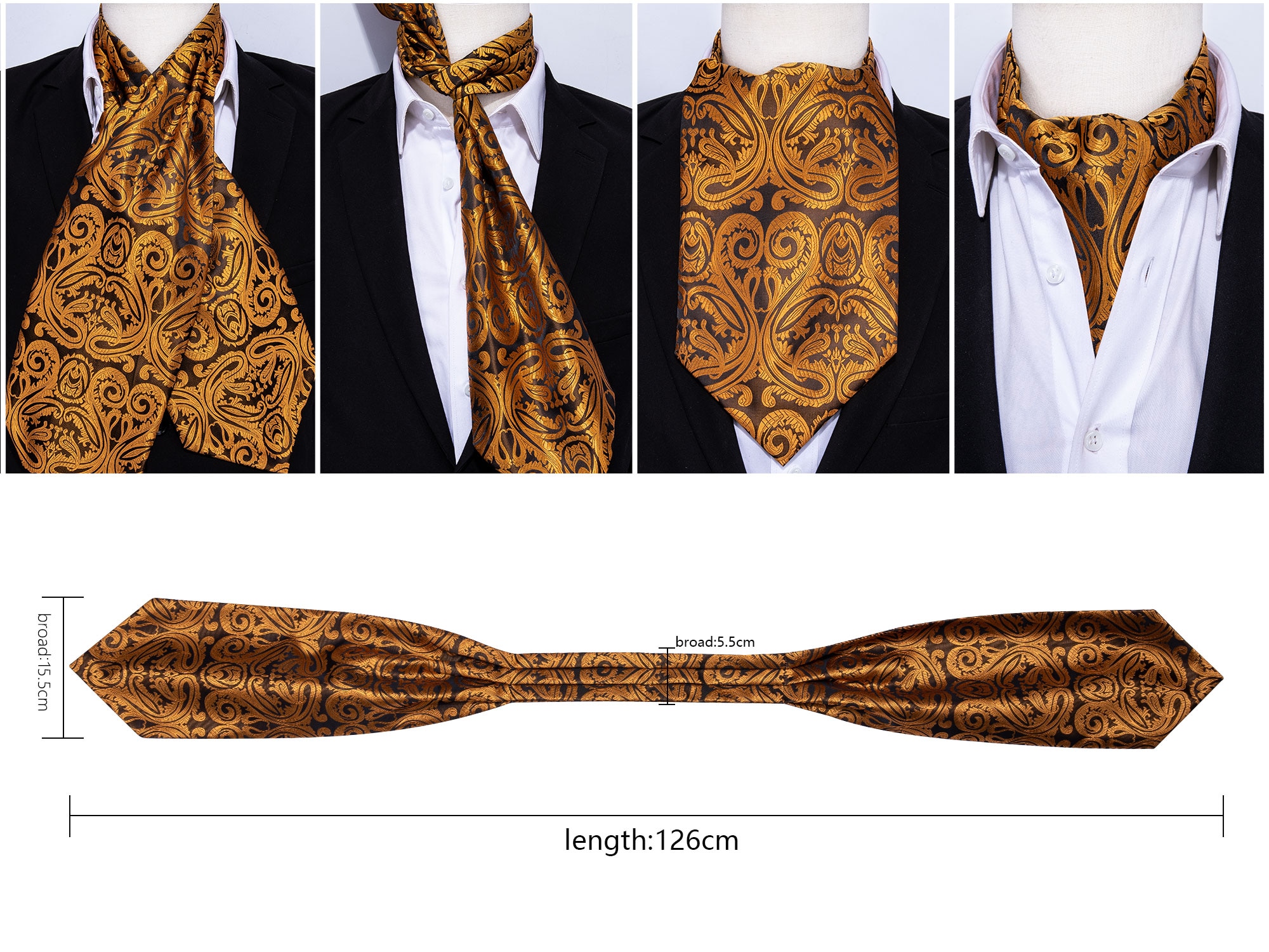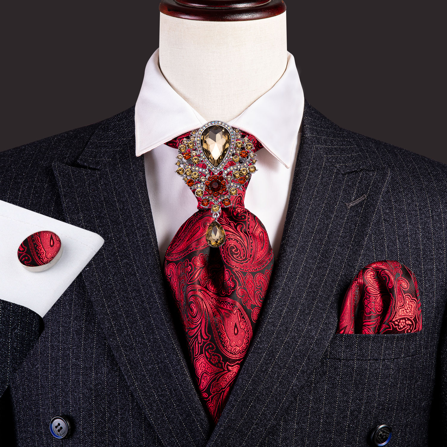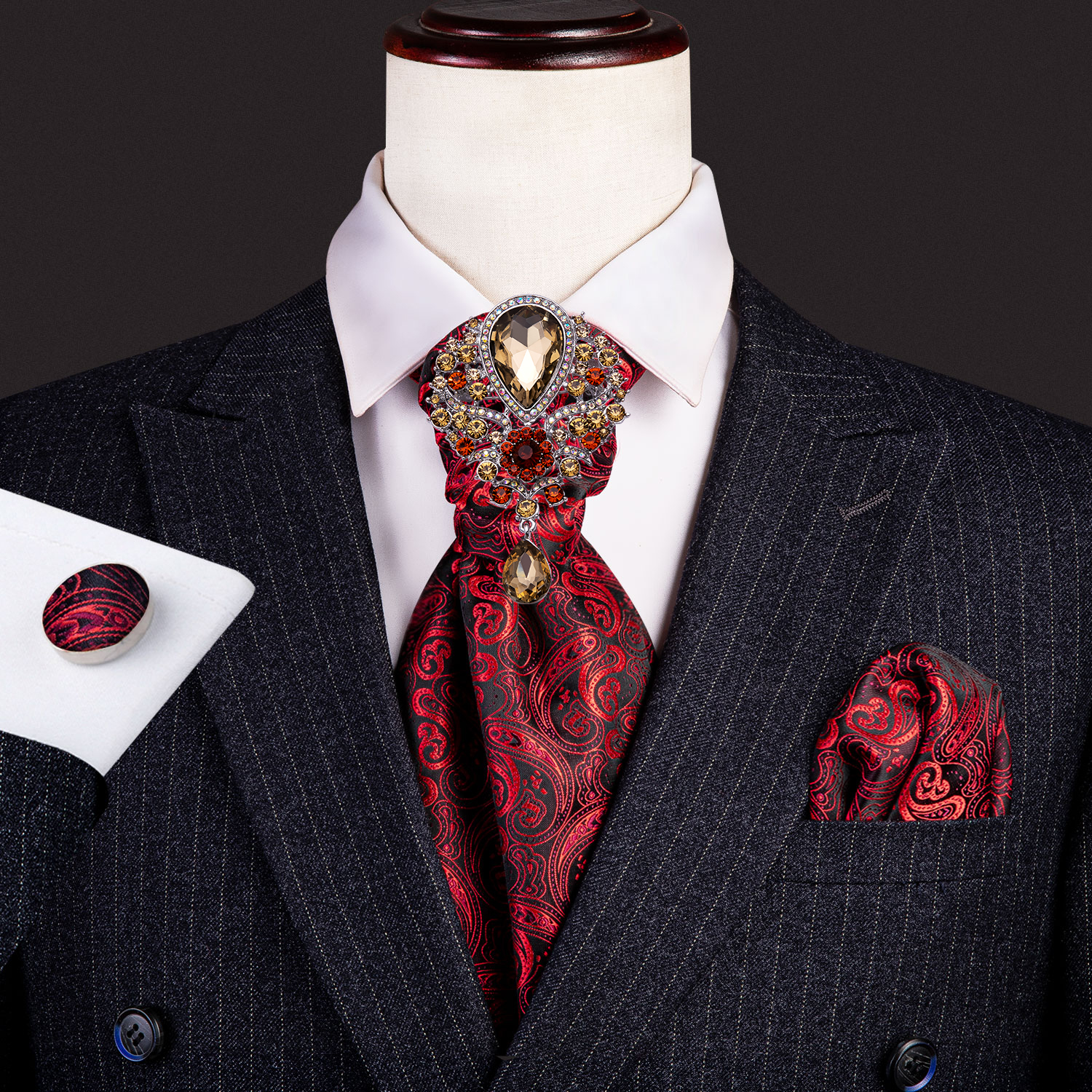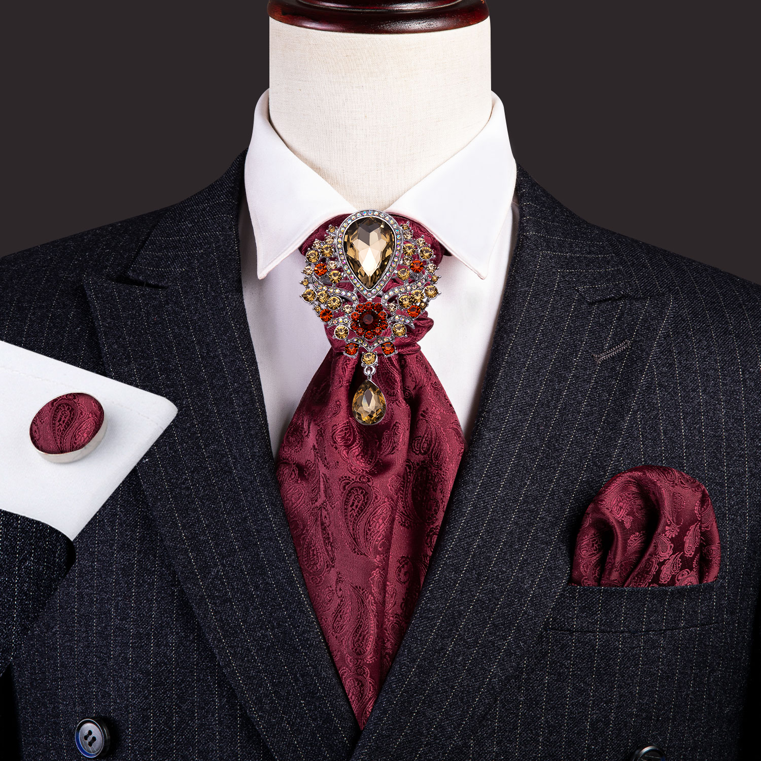 Packing Men Ascot Tie + Handkerchief + Cufflinks+Brooch