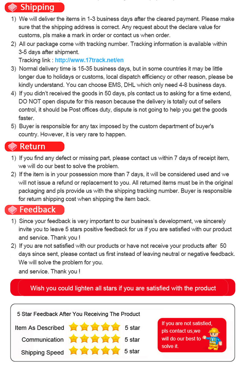 2. Если при получении модели отсутствуют детали, пожалуйста, свяжитесь с нами в первый раз, спасибо!