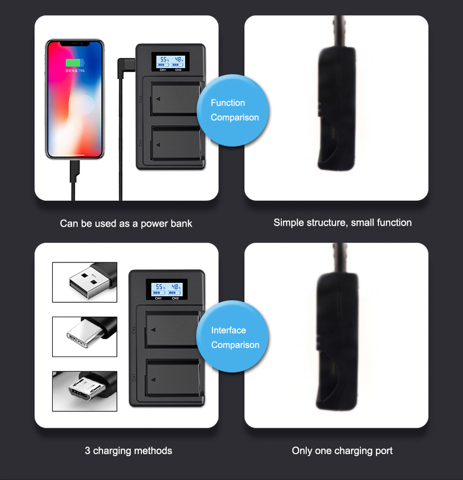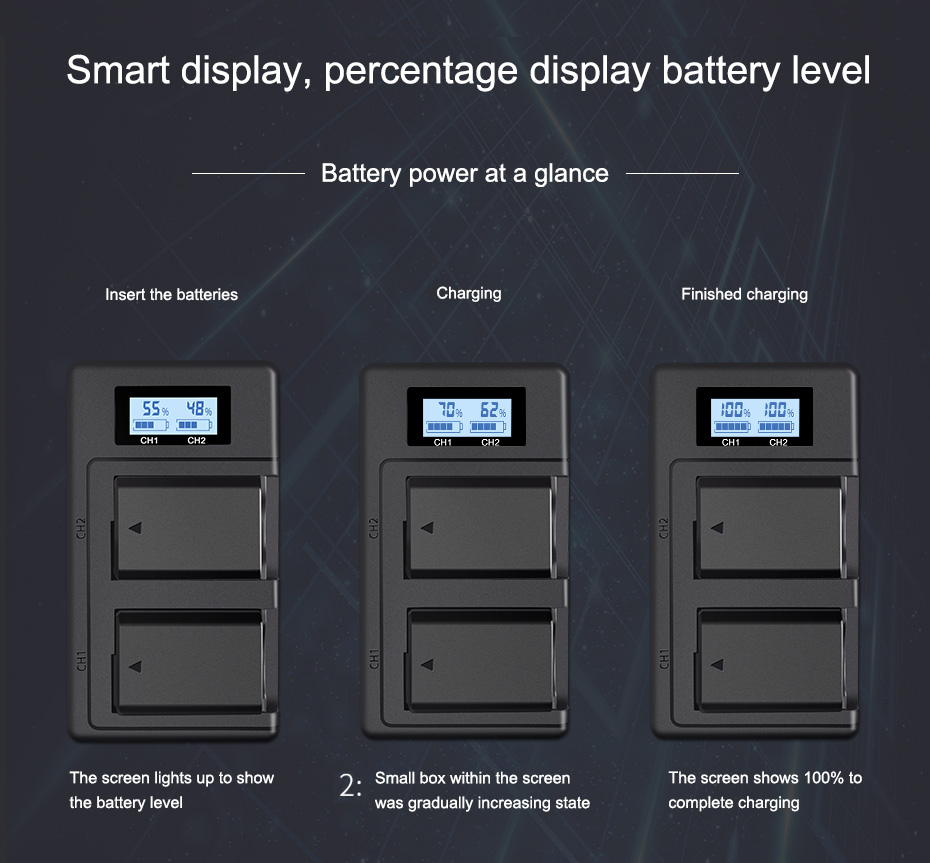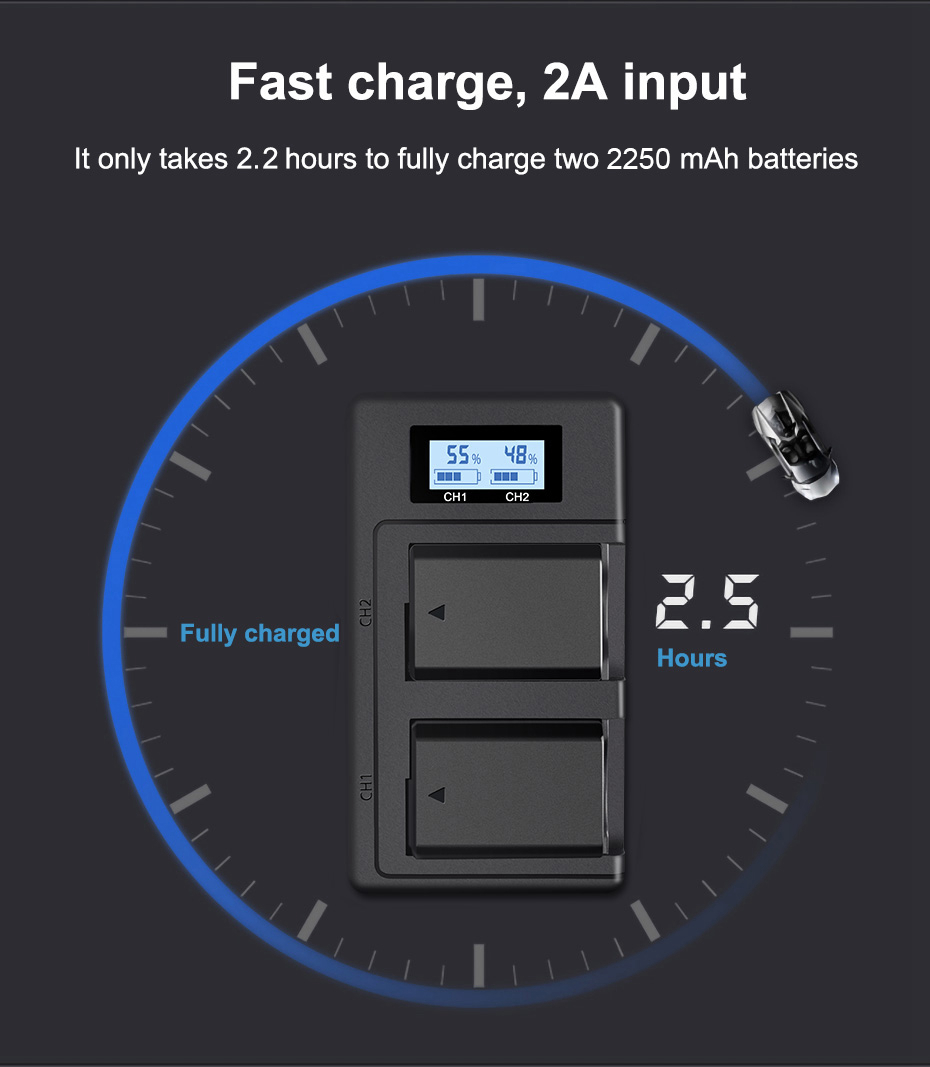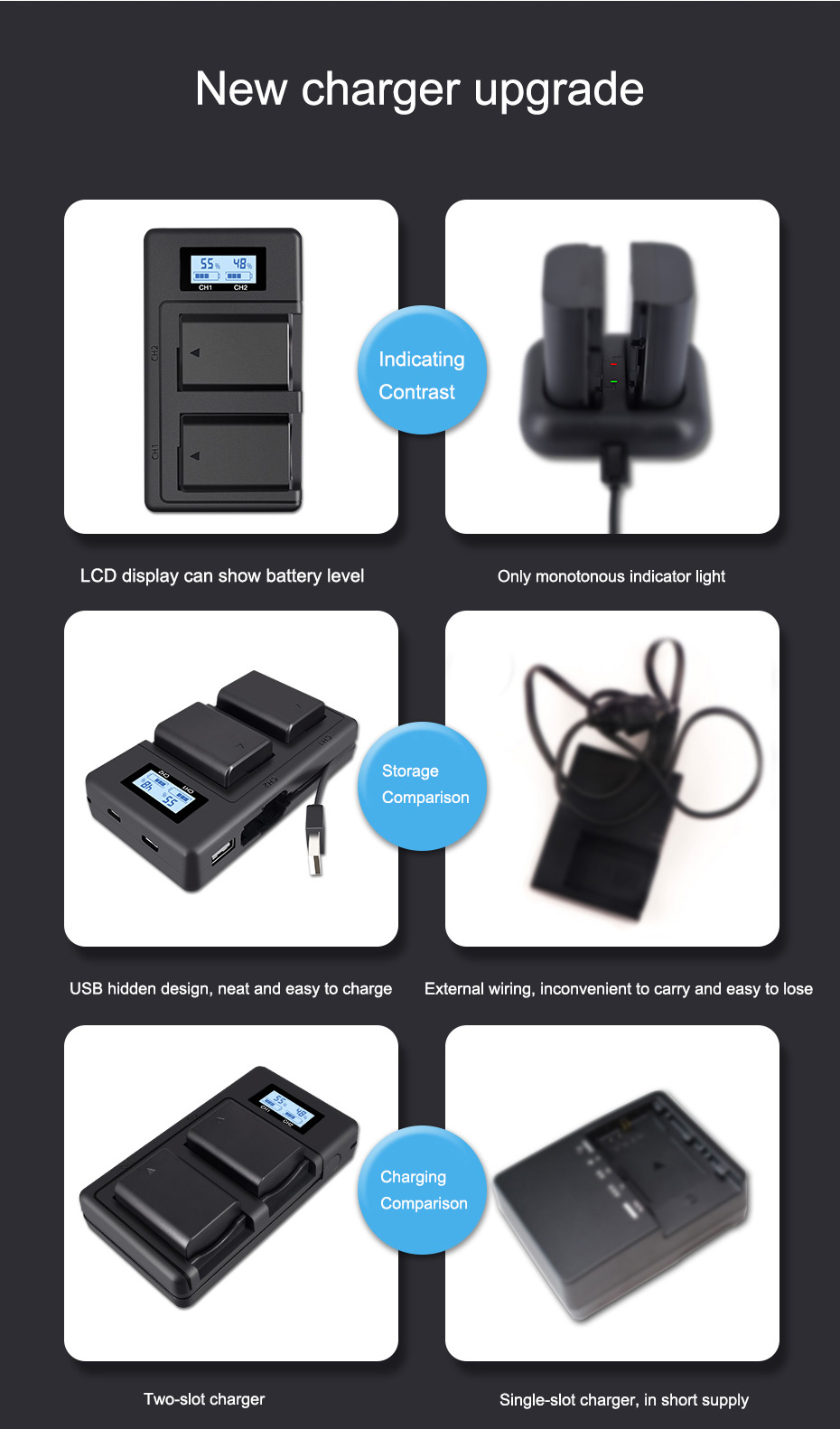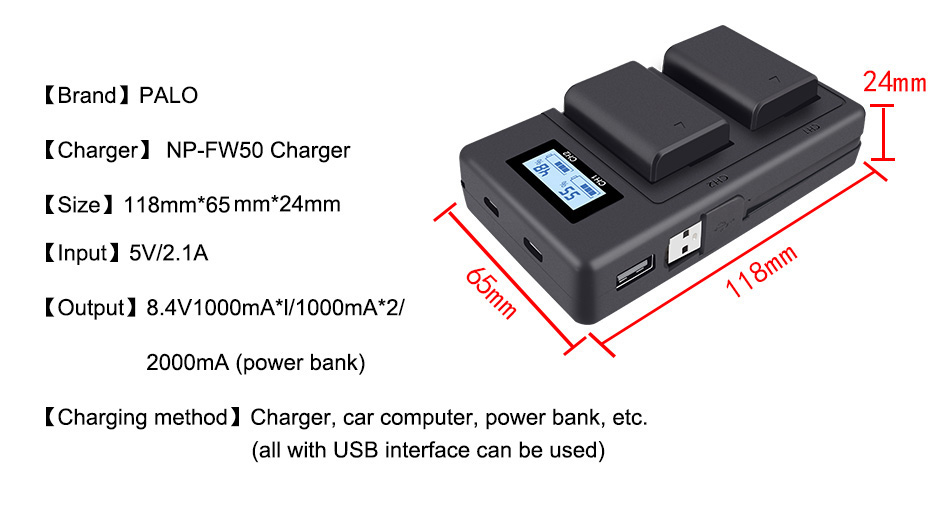 NP-FW50Batteries и двойное зарядное устройство USB с ЖК-дисплеем
