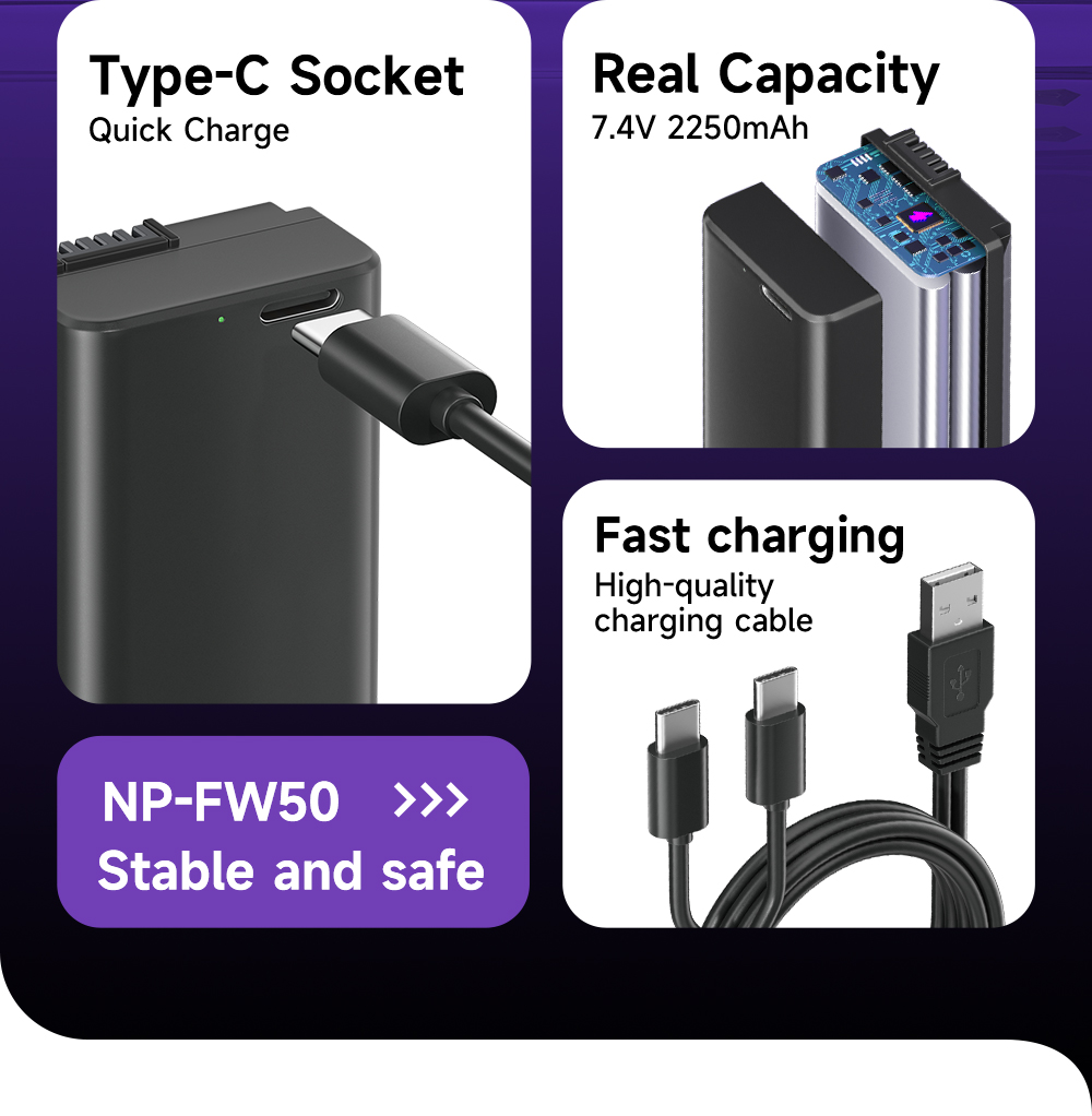 NP-FW50 NP FW50 NPFW50 Type C USB зарядка для камеры Sony ZV-E10 ZV E10 Alpha A6500 A6000 A5000 A3000 NEX-3 A7R a7S