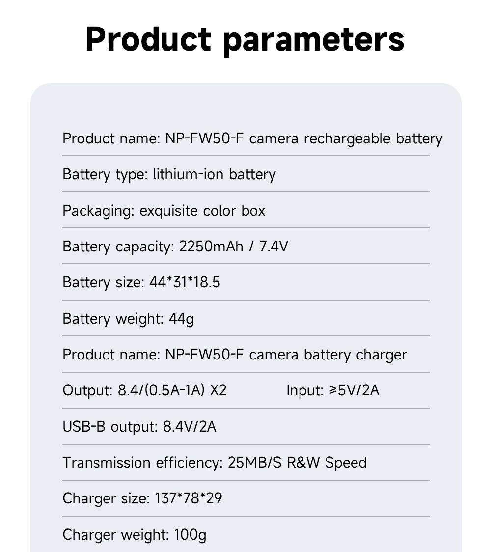 <span class="SnowProductCharacteristics_SnowProductCharacteristicsItem__titleContent__534v9">NP FW50 Battery</span> For Sony A7RII A7II A6000 A6400 A6300 A6500 A7 A7SII A7S A7S2 A7R Batteries