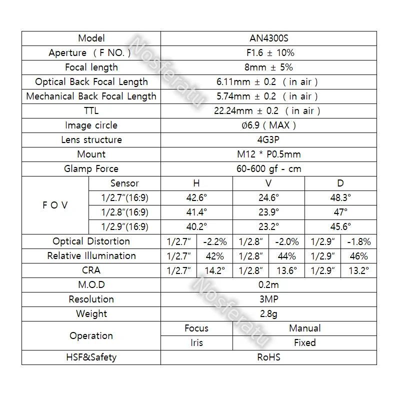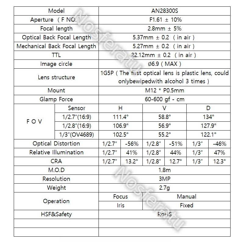 1. Объектив starlight с разрешением 3MP, 1/2.7 дюймов и имеет апертуру aLarge F1.6, особенно поддерживается 2-мегапиксельным SONY IMX290/IMX291/IMX327/IMX307 starlight sensor.