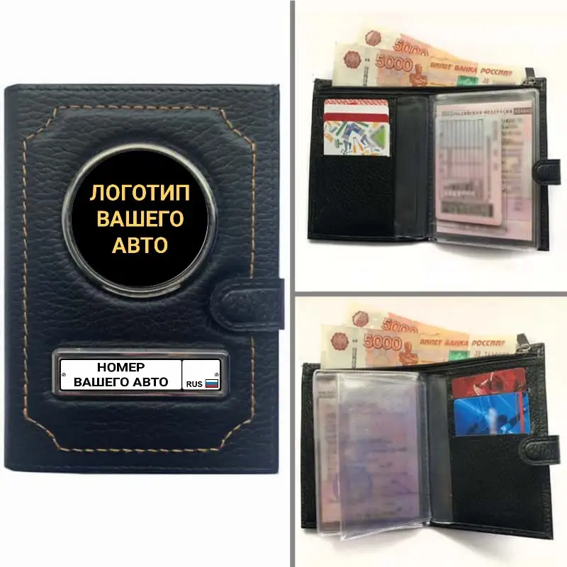 Водительское удостоверение (1 карман), Свидетельство о регистрации (4 кармана), Страховка (1 карман)
