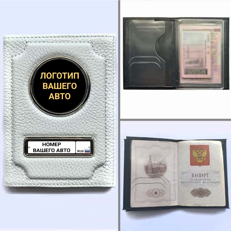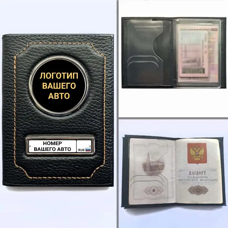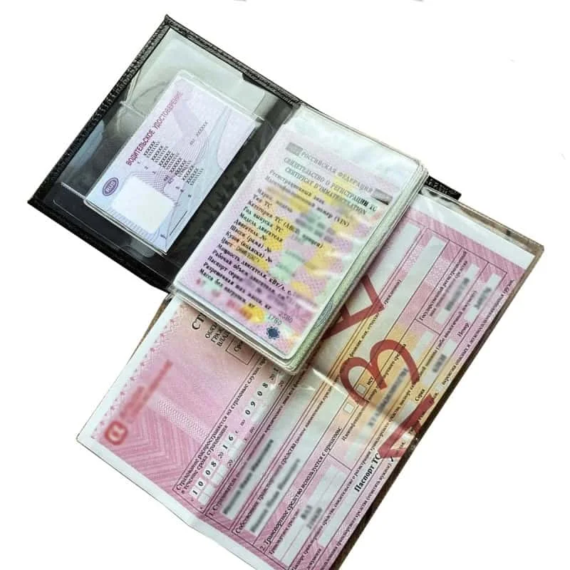 Водительское удостоверение (1 карман), Свидетельство о регистрации (4 кармана), Страховка (1 карман), Паспорт.