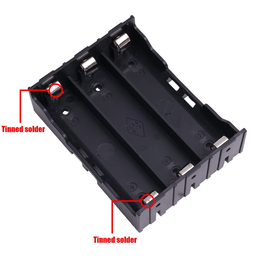 Он может вместить батареи стандартного размера, одноразовые или перезаряжаемые, а жесткие контакты легко припаять и прикреплять. Вмещает 1/2/3/4 3,7 V * N аккумуляторных батарей.