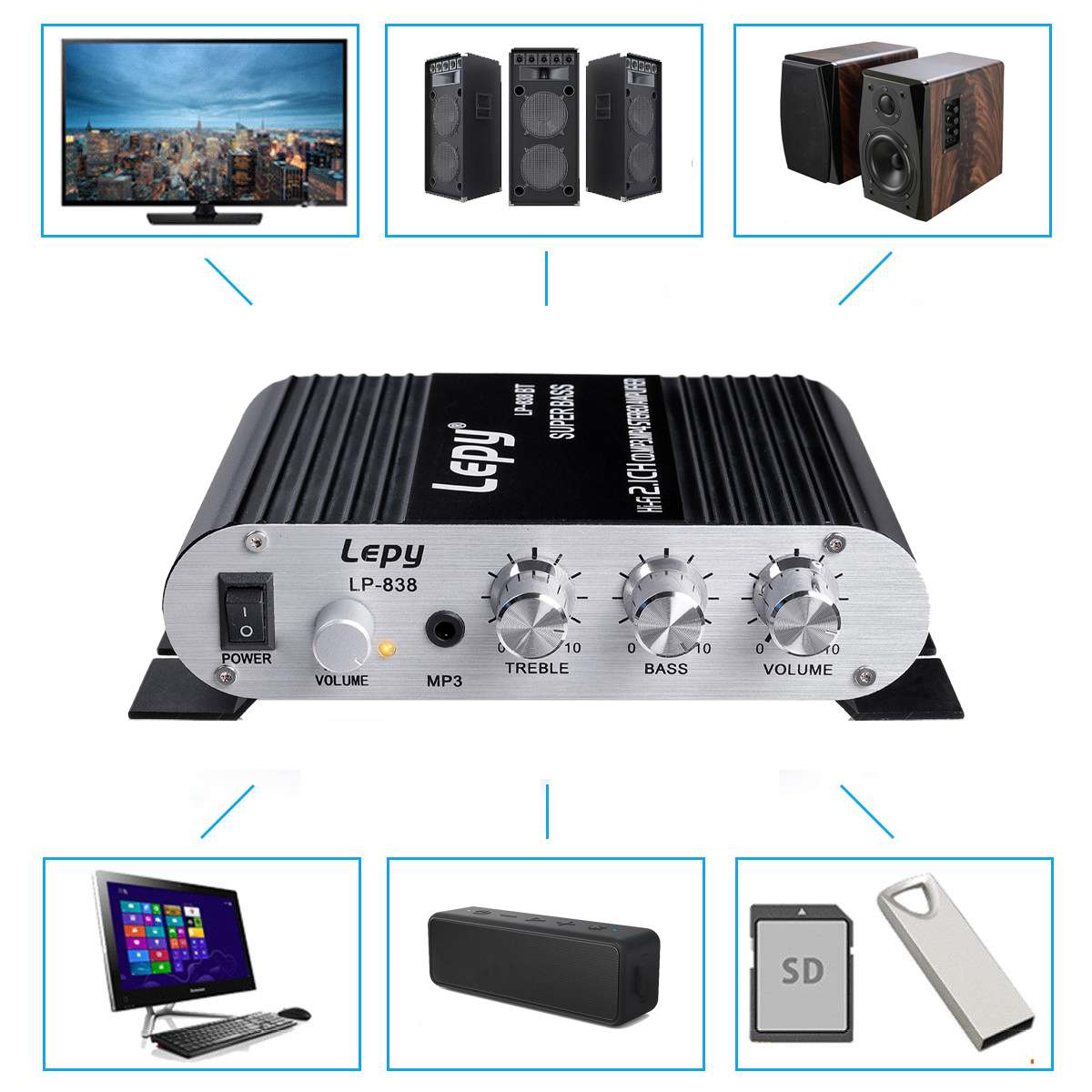 -Super Bass Hi-Fi стерео Bluetooth 2.1-канальный усилитель.