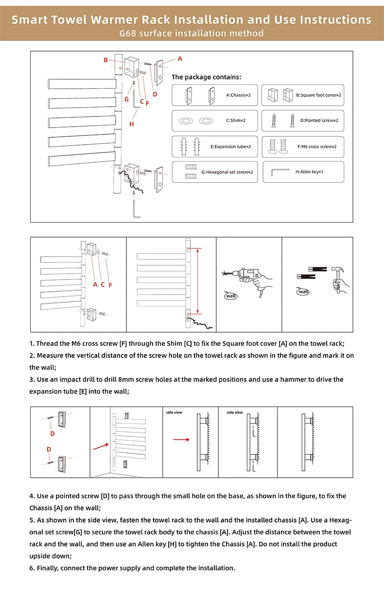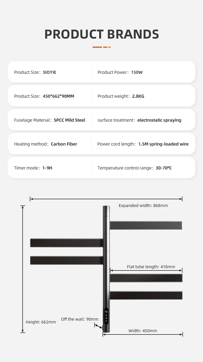 Оборудование для ванной комнаты, электрическая вешалка для полотенец с контролем температуры и времени, вешалка для полотенец с подогревом G68